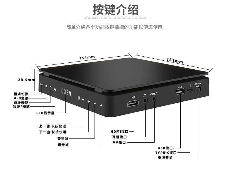 New DVD HD DVD player children's VCD player mini CD player factory direct DVD player cross-border export