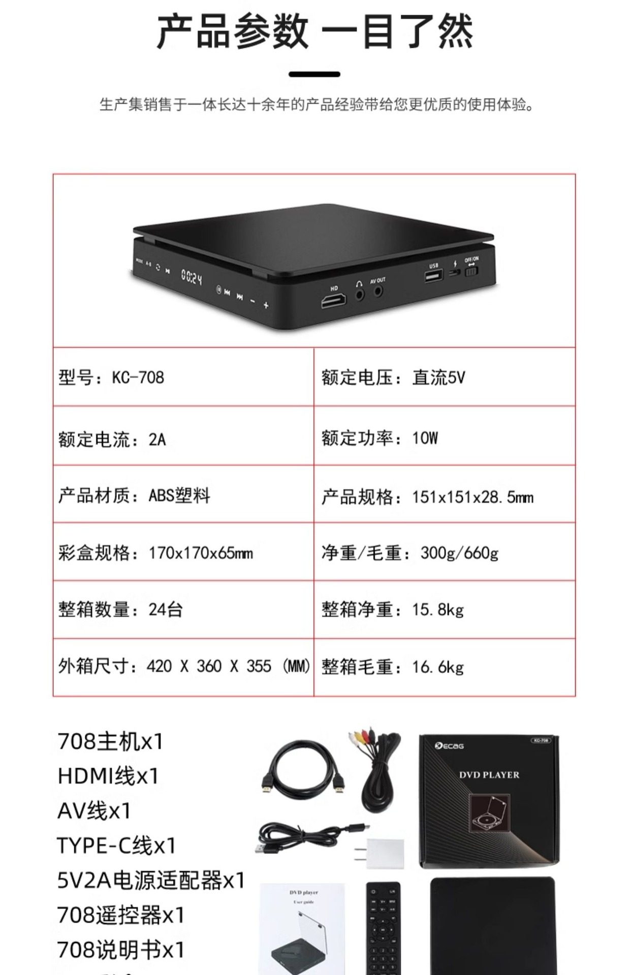 | Color | The KC-708DVD version cannot be placed outside the plug-in version [can be connected to TV]],KC-708CD version can not be placed outside the charging version [can not be connected to the TV]] |