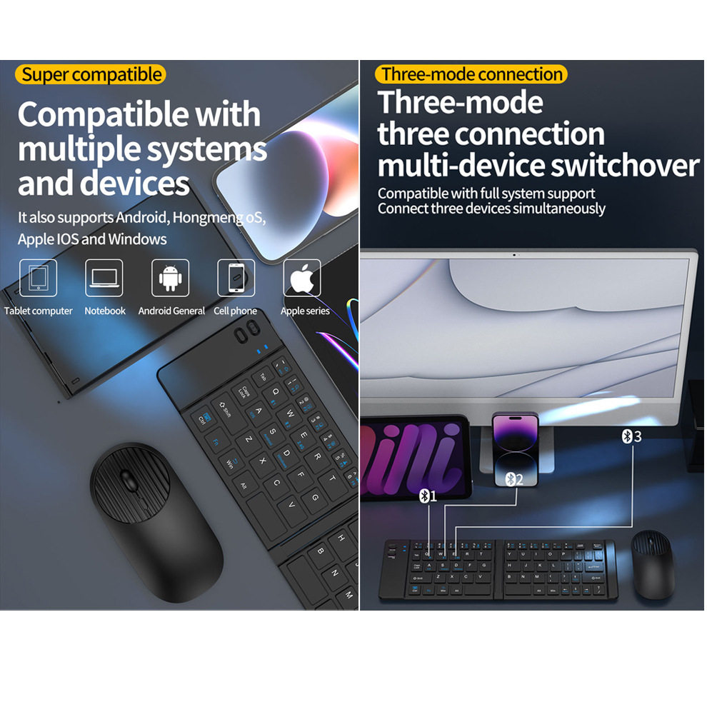 Mini Portable Bluetooth Wireless Foldable Keyboard Rechargeable Keyboard Bluetooth 2.4G Wireless Mouse