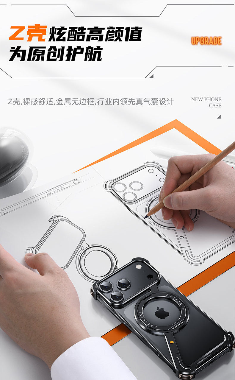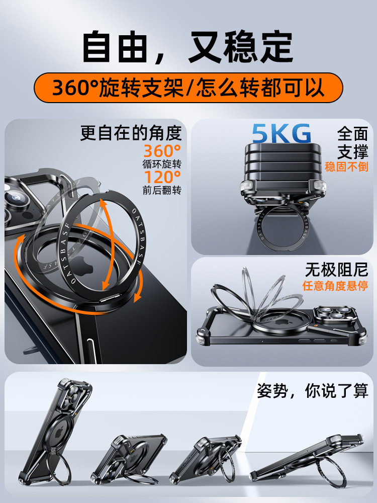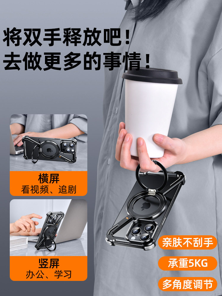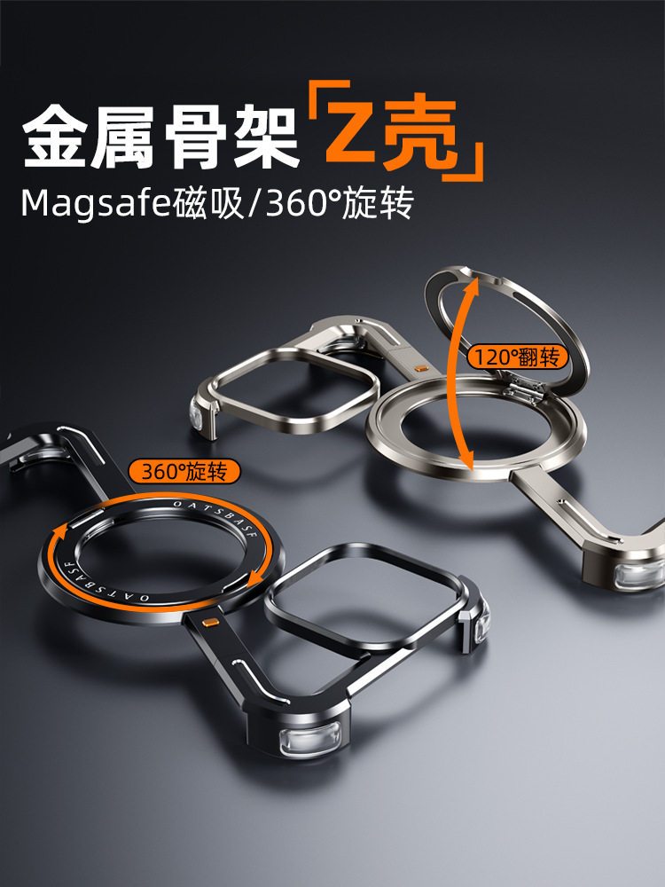 Suitable for Iphone17Promax Rotating Magnetic Holder Mobile Phone Case Metal Cut Out Apple 16 Borderless Z Shell 5