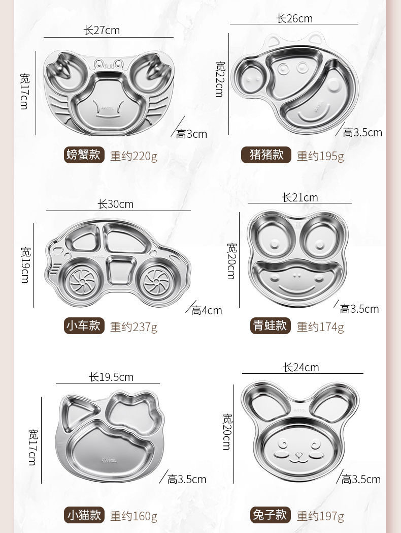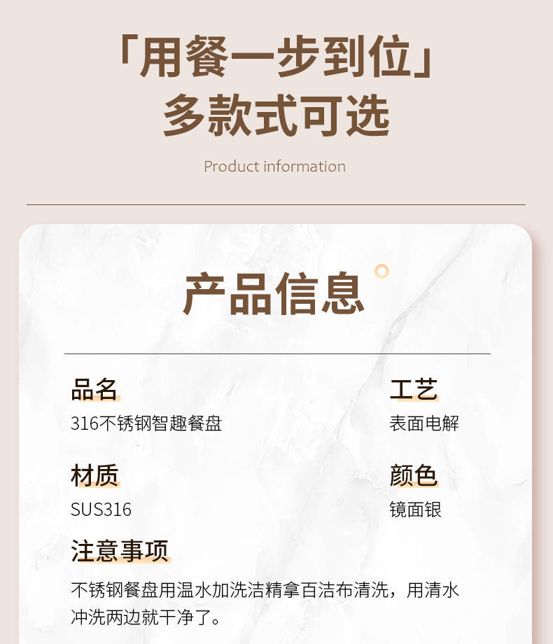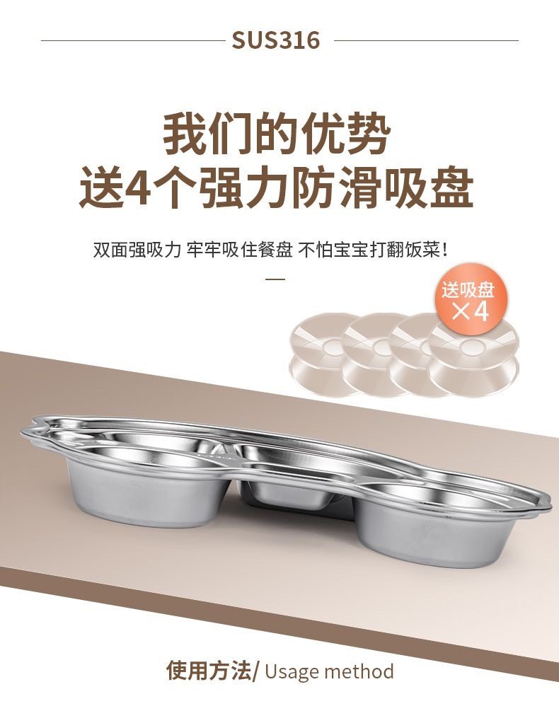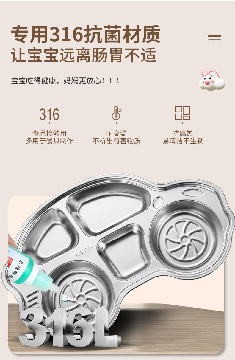 316 stainless steel children's dinner plate compartment baby boys and girls children eating plate baby garden special tableware rice bowl