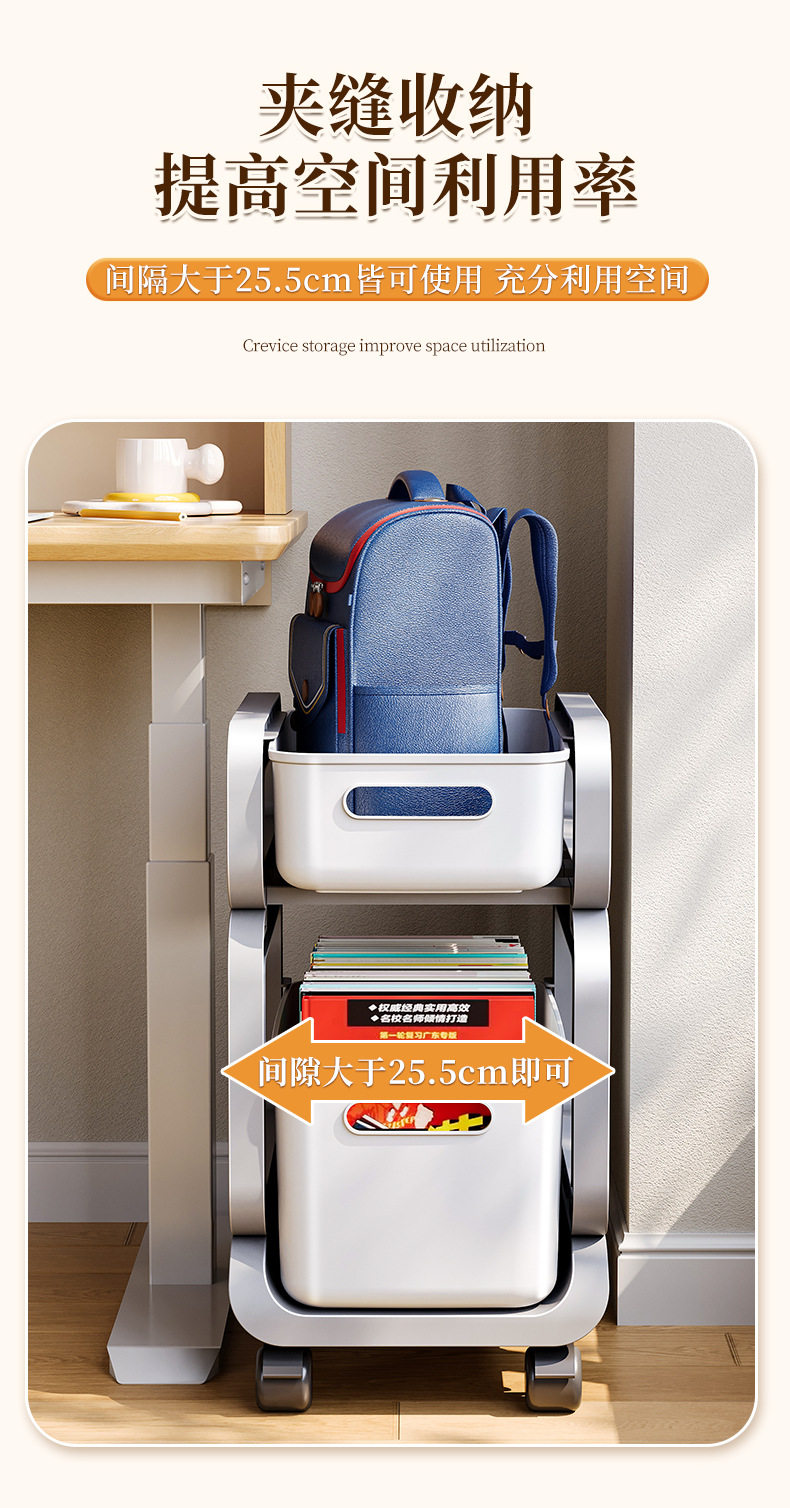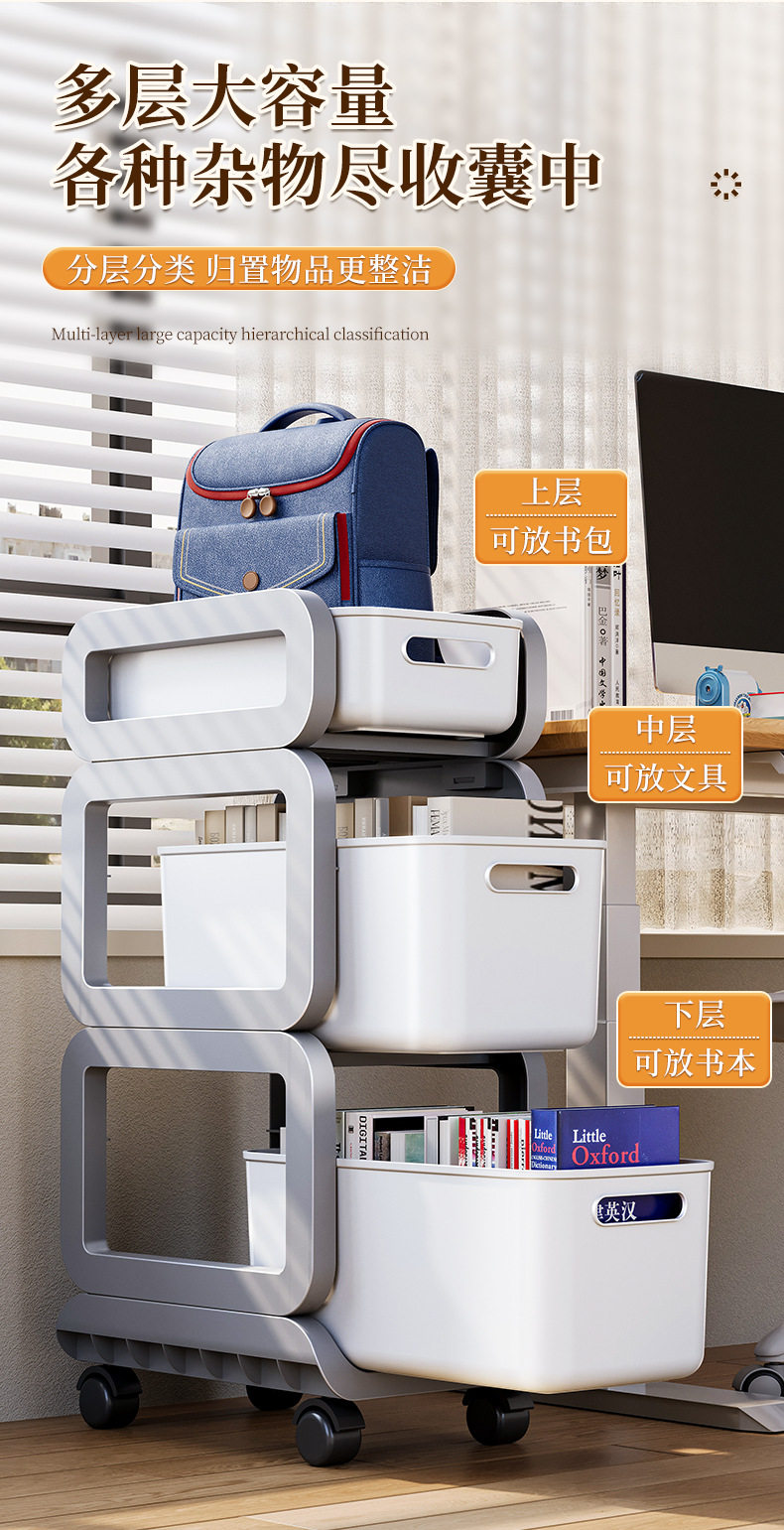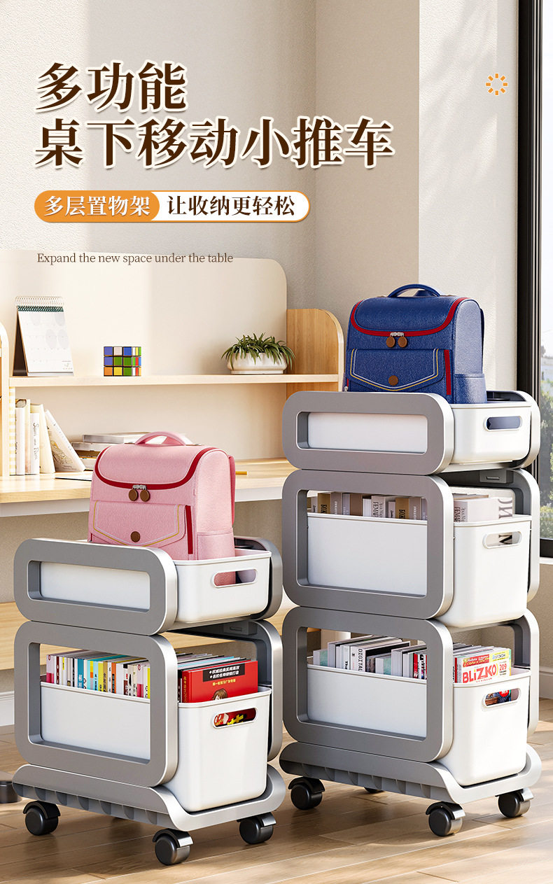 School Bag Storage Rack Movable Cart Book Storage Rack Artifact Household Multi-Layer School Bag Storage Cabinet Under Table
