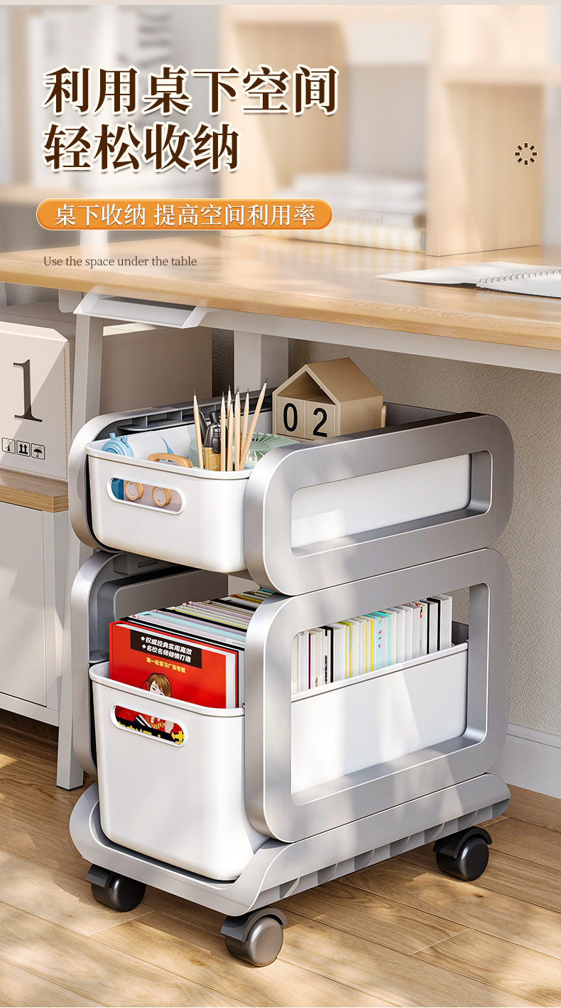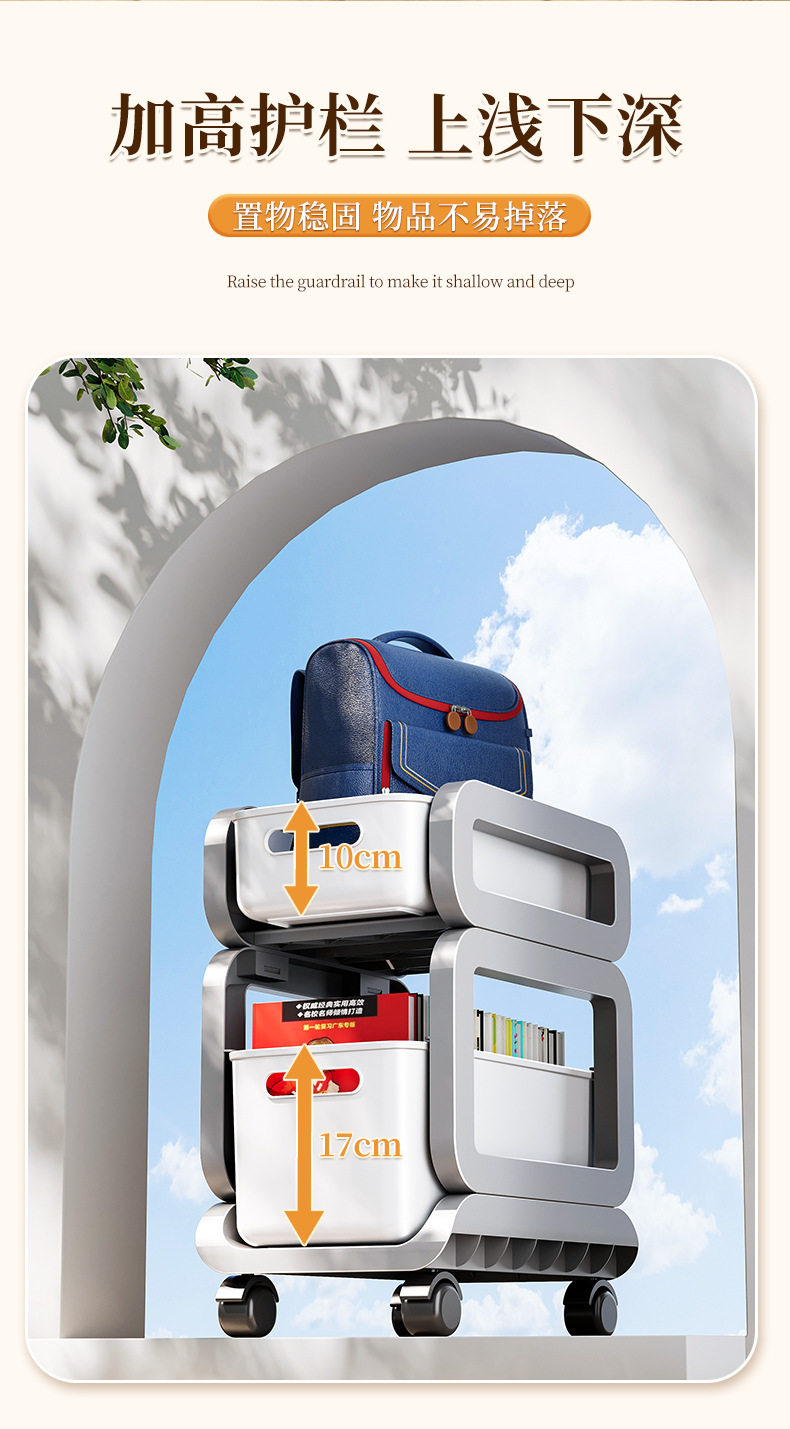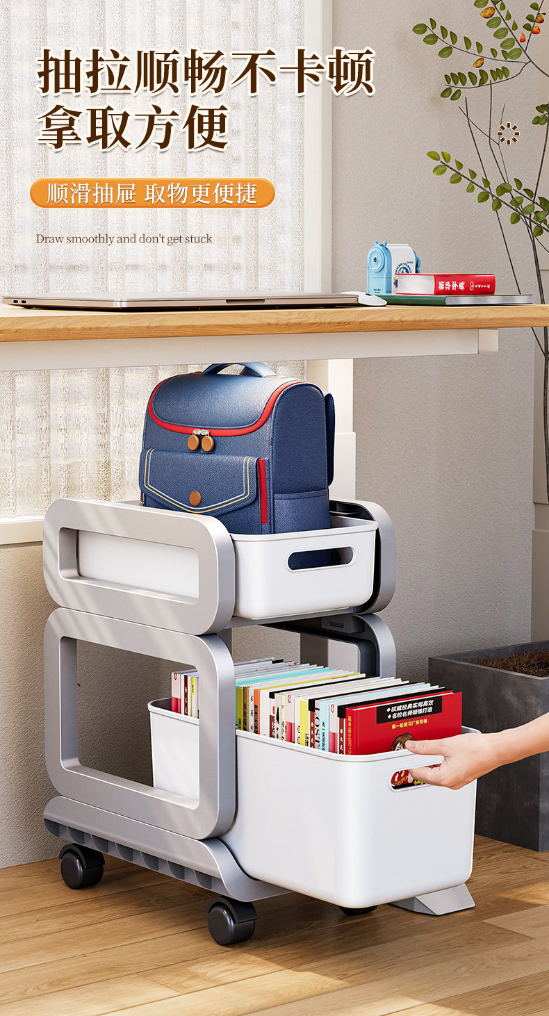 School Bag Storage Rack Movable Cart Book Storage Rack Artifact Household Multi-Layer School Bag Storage Cabinet Under Table