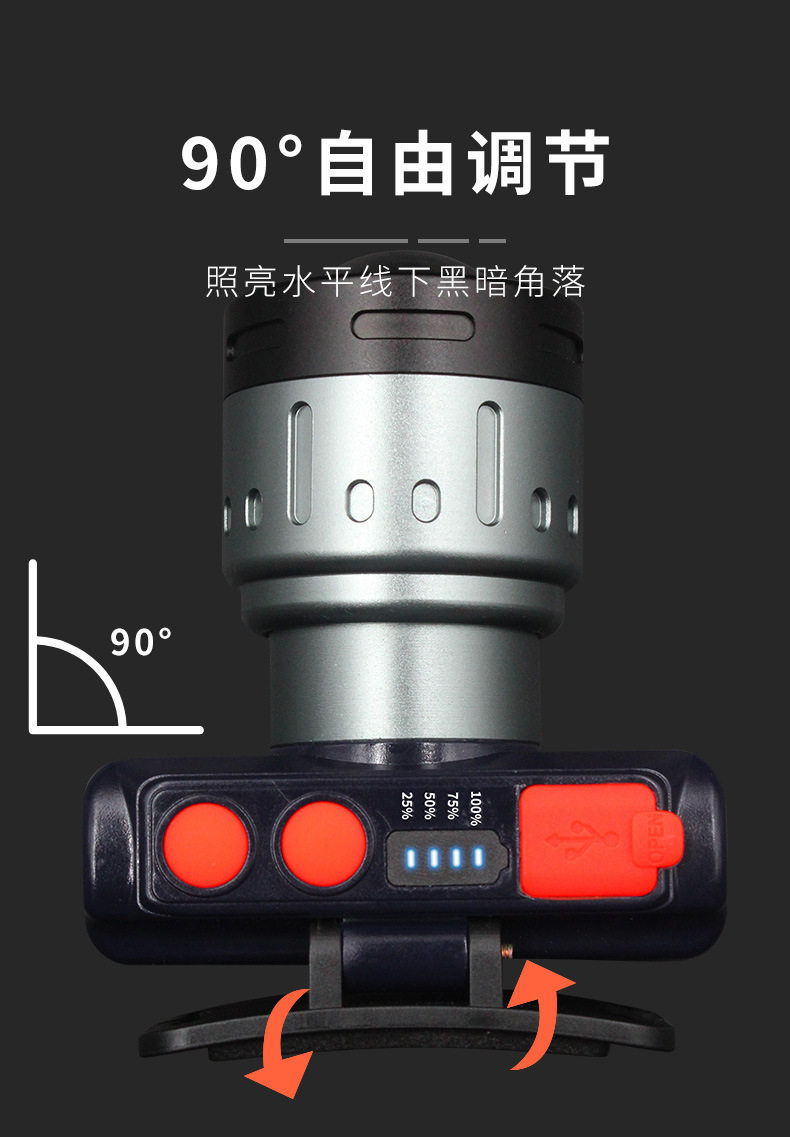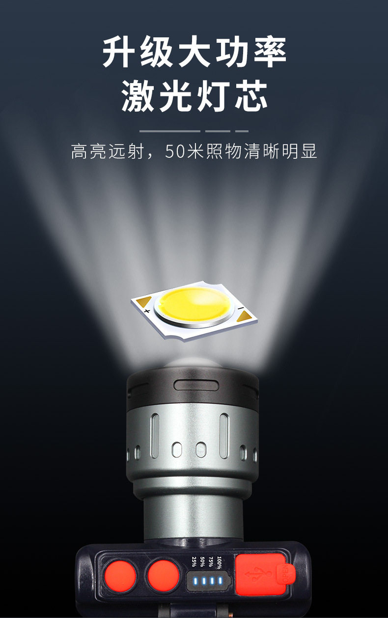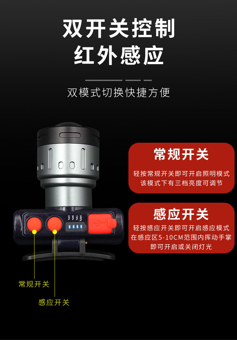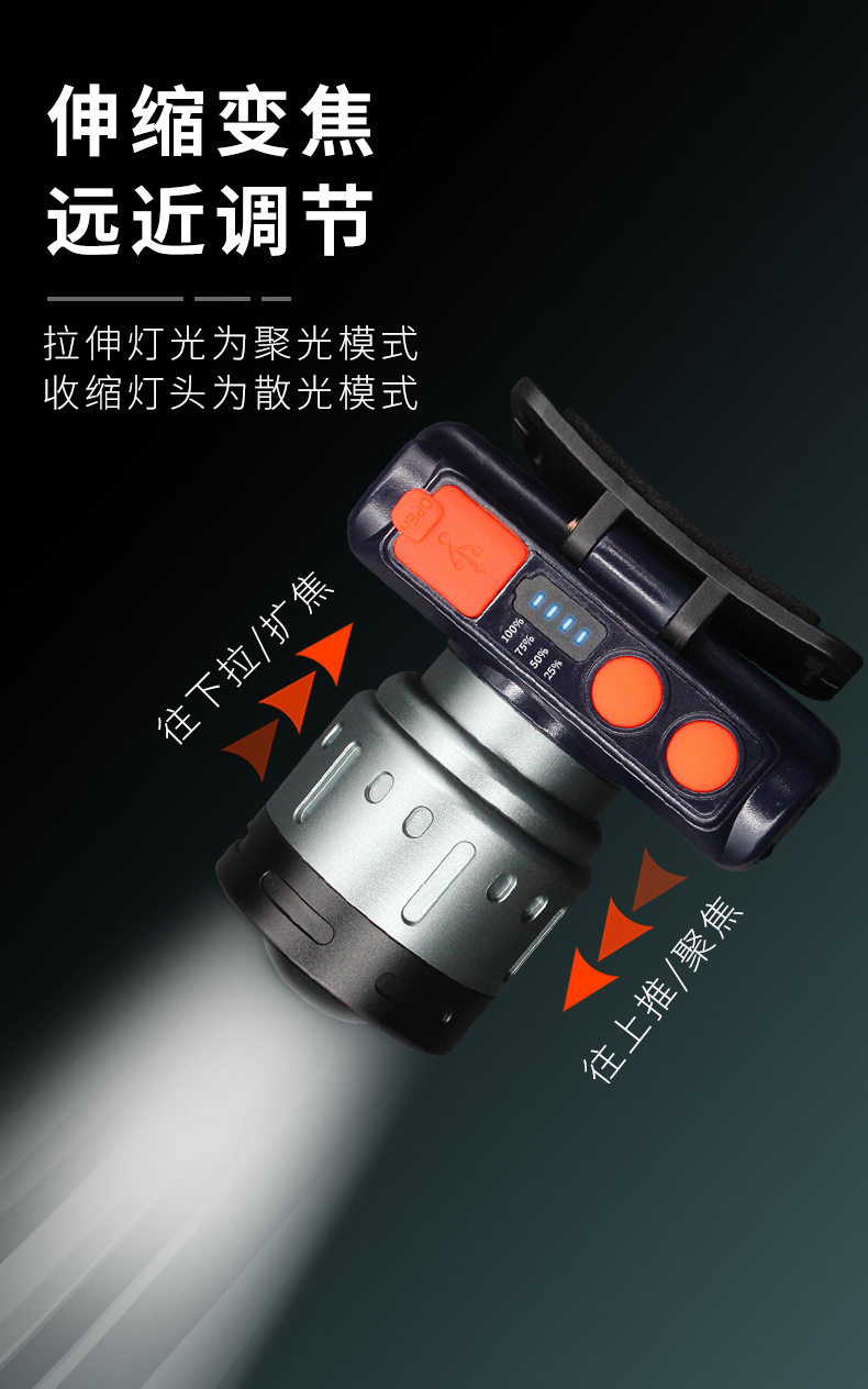 Headlamp Strong Light Charging Super Bright Adjustable Focal Length Lighting Miner's Lamp Super Long Endurance Induction Night Fishing Lamp Flashlight