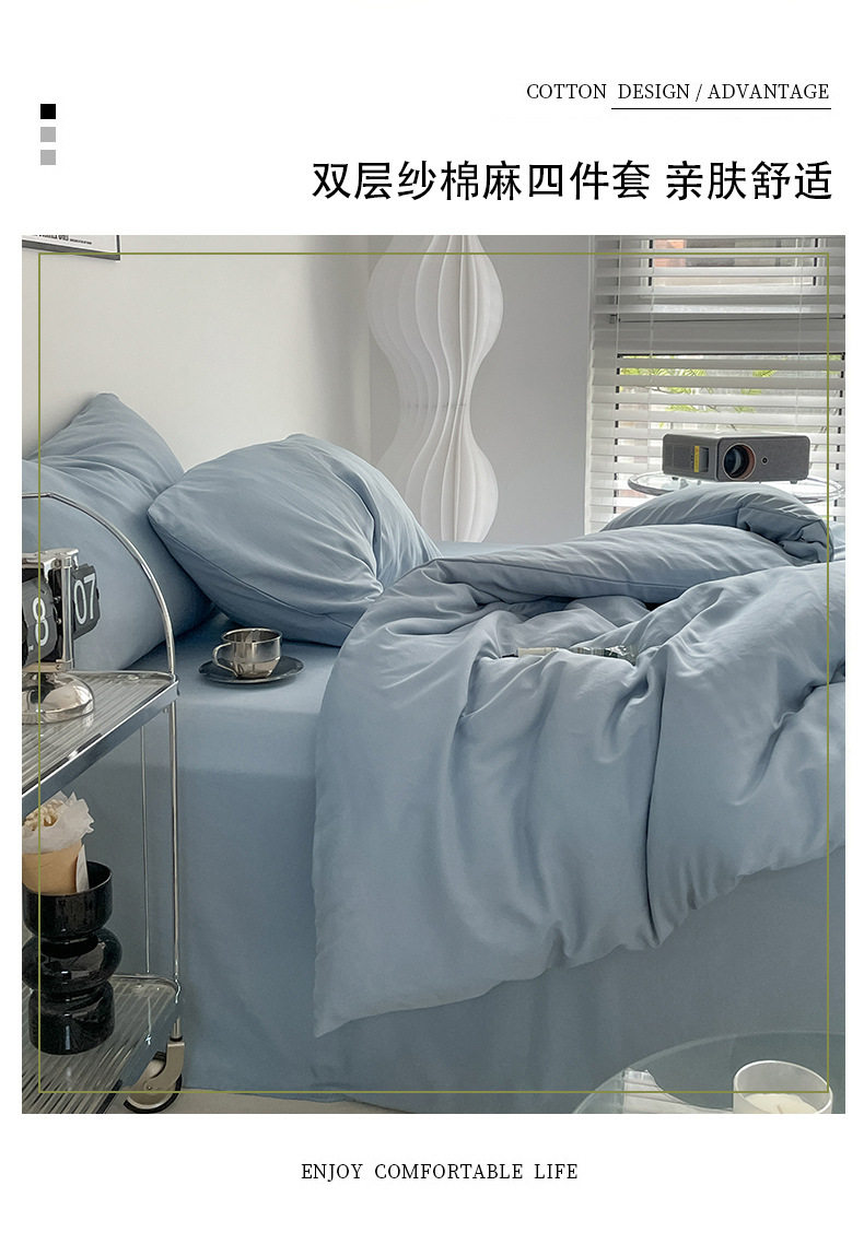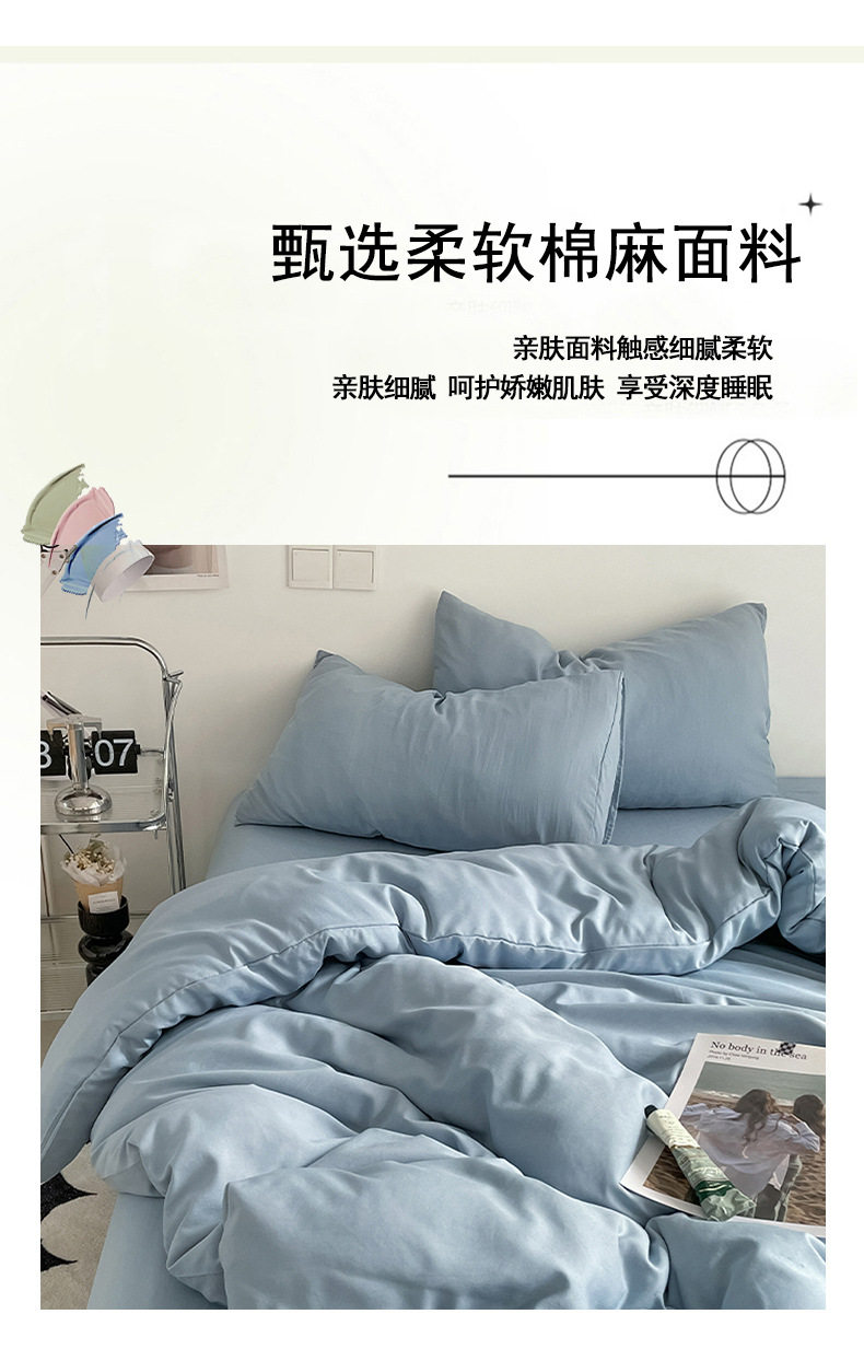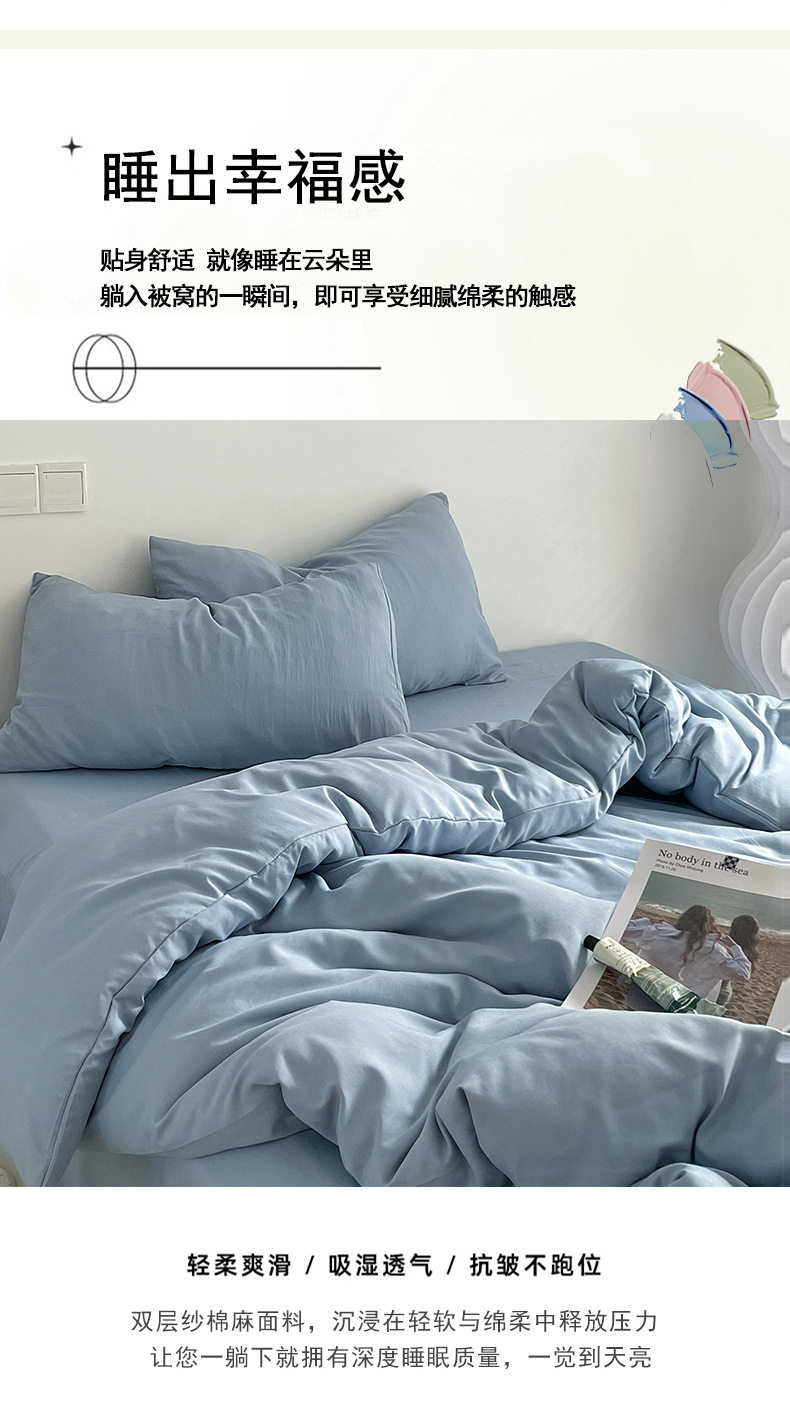 Class a Ins-Style Solid Color Pure Cotton Four-Piece Set, Four Duvet Covers, Single Three-Piece Bedding Set, Fitted Sheet Style