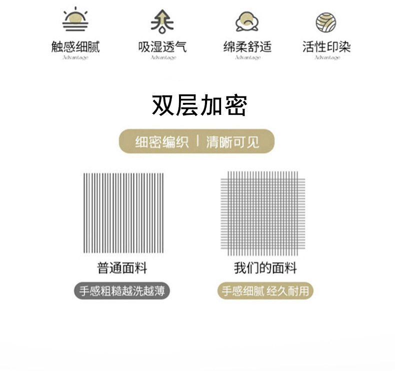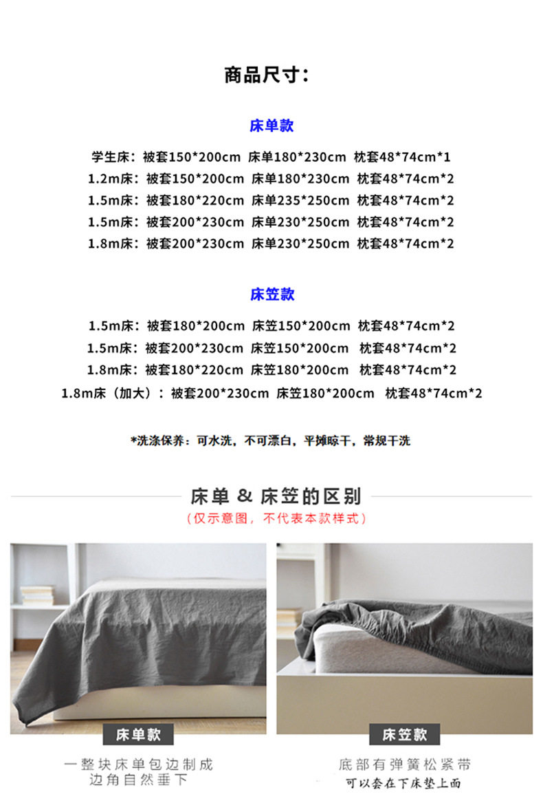 | Dimensions | 0.9m student bed [sheet three-piece set]],1.2m single bed [sheet four-piece set]],1.5m bed [bed sheet four-piece quilt cover 180*220]],1.5m bed [bed sheet four-piece quilt cover 200*230]],1.8m bed [bed sheet four-piece quilt cover 200*230]],1.5m bed [bed hat four-piece quilt cover 180*220]],1.5m bed [bed hat four-piece quilt cover 200*230]],1.8m bed [bed hat four-piece quilt cover 200*230]] |