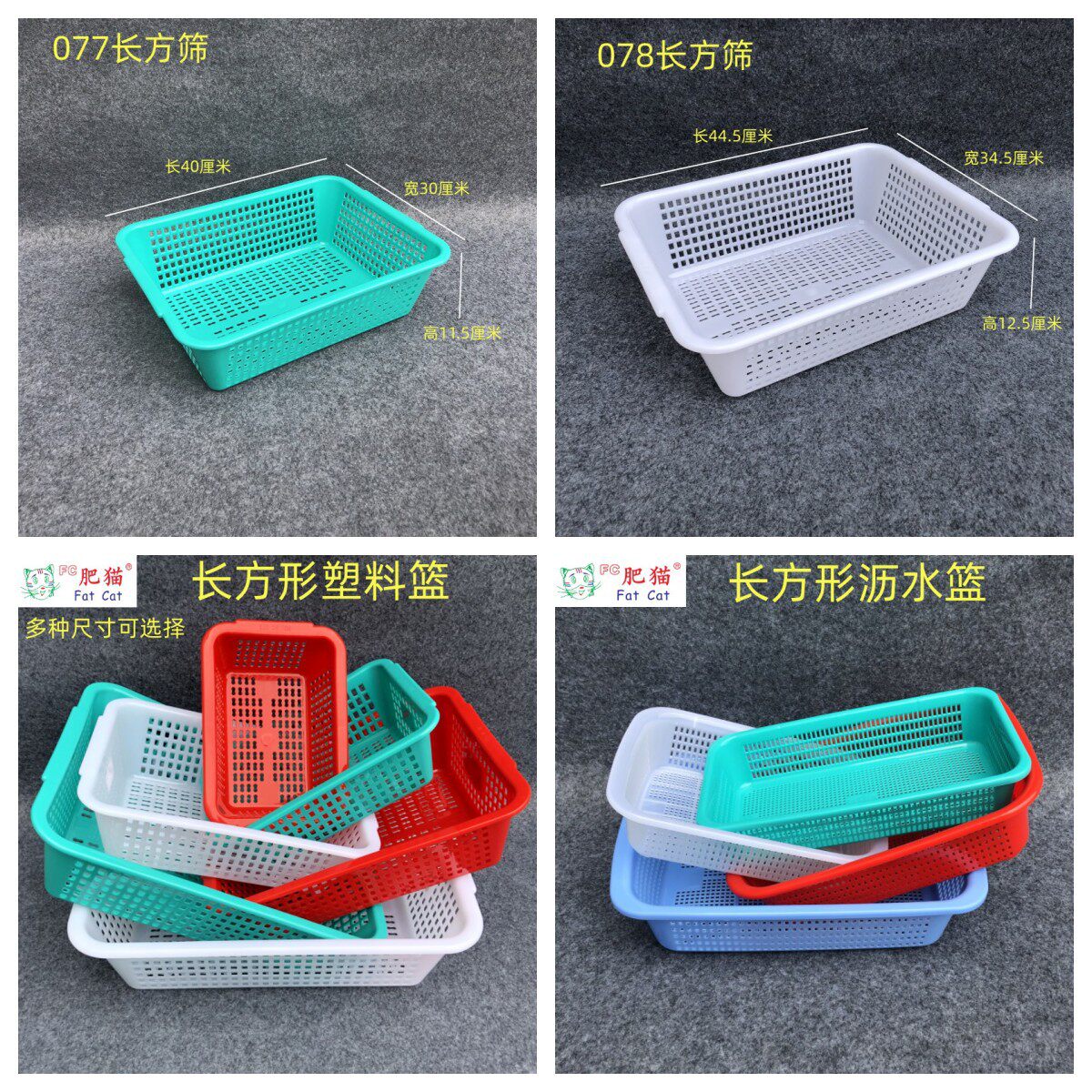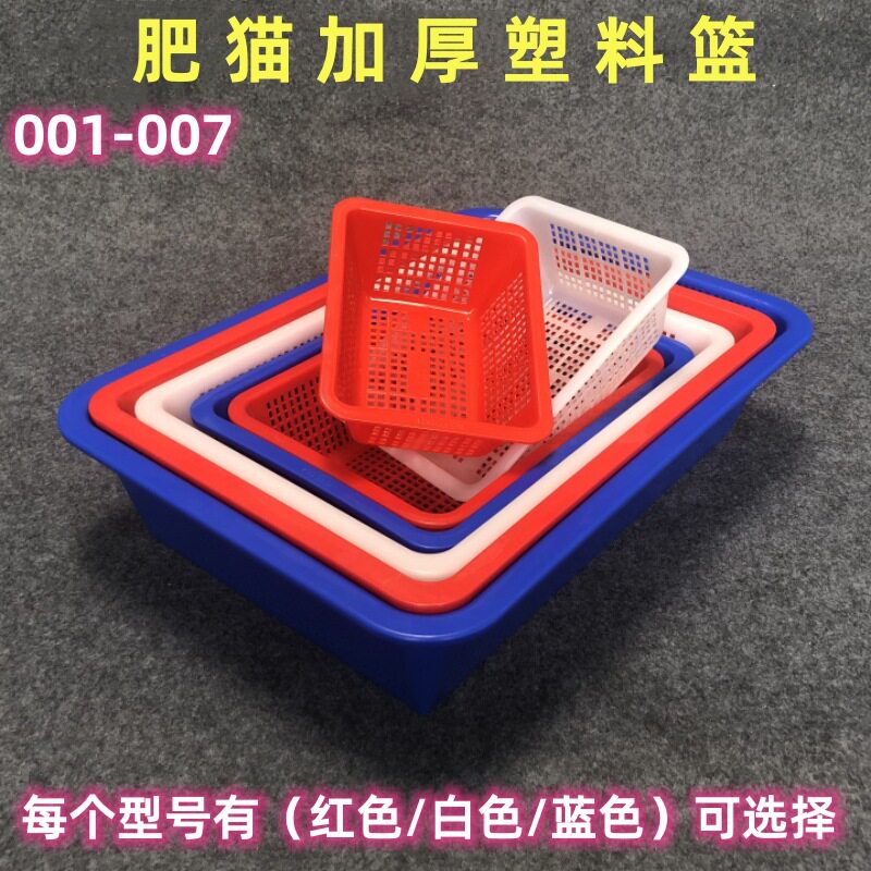 Fat Cat Thickened Plastic Basket Rectangular Square Oval Draining Basket Glue Sieve Vegetable Washing Leakage Basket Storage Shau Kei