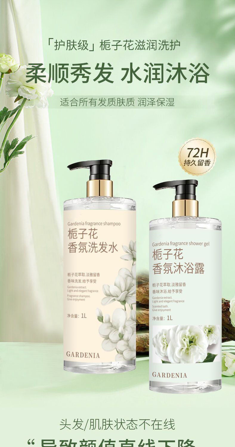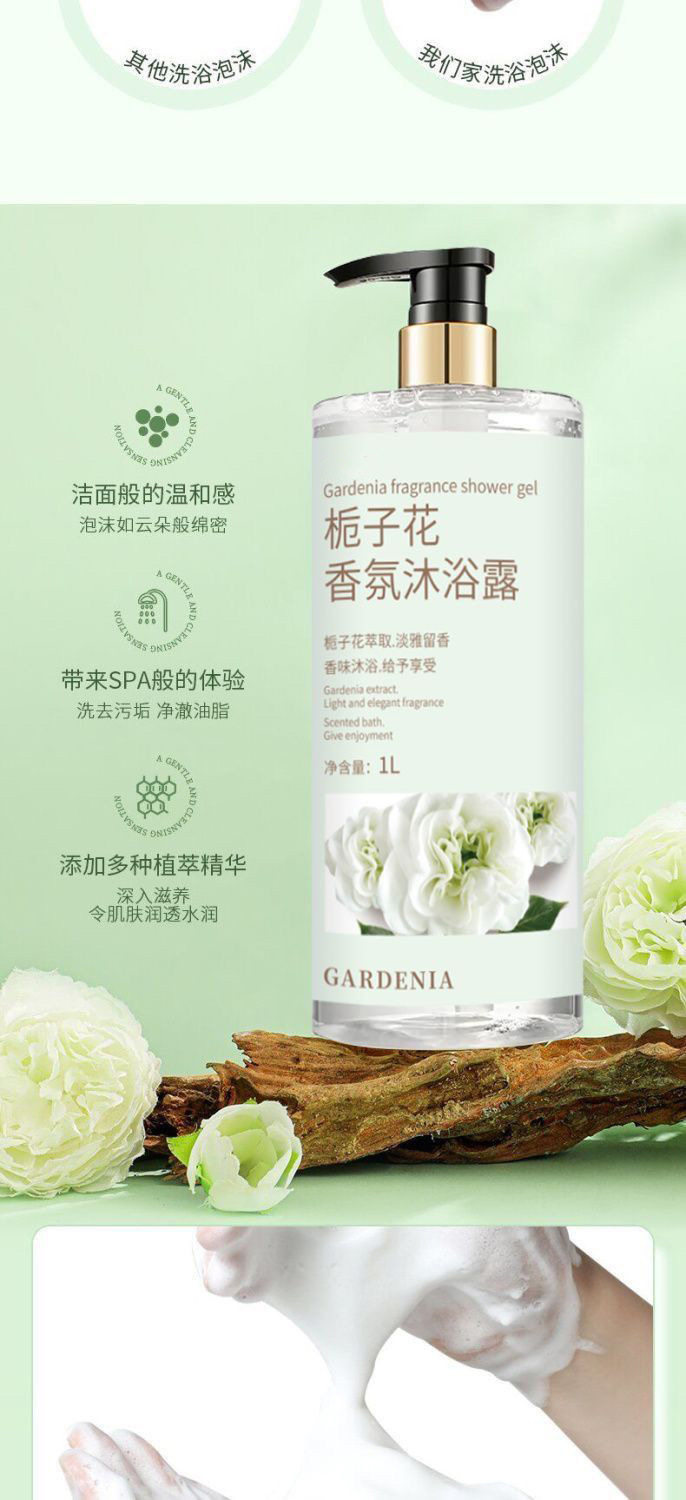 Gardenia 1L large capacity fragrance bath shampoo shower gel unisex lasting fragrance suit
