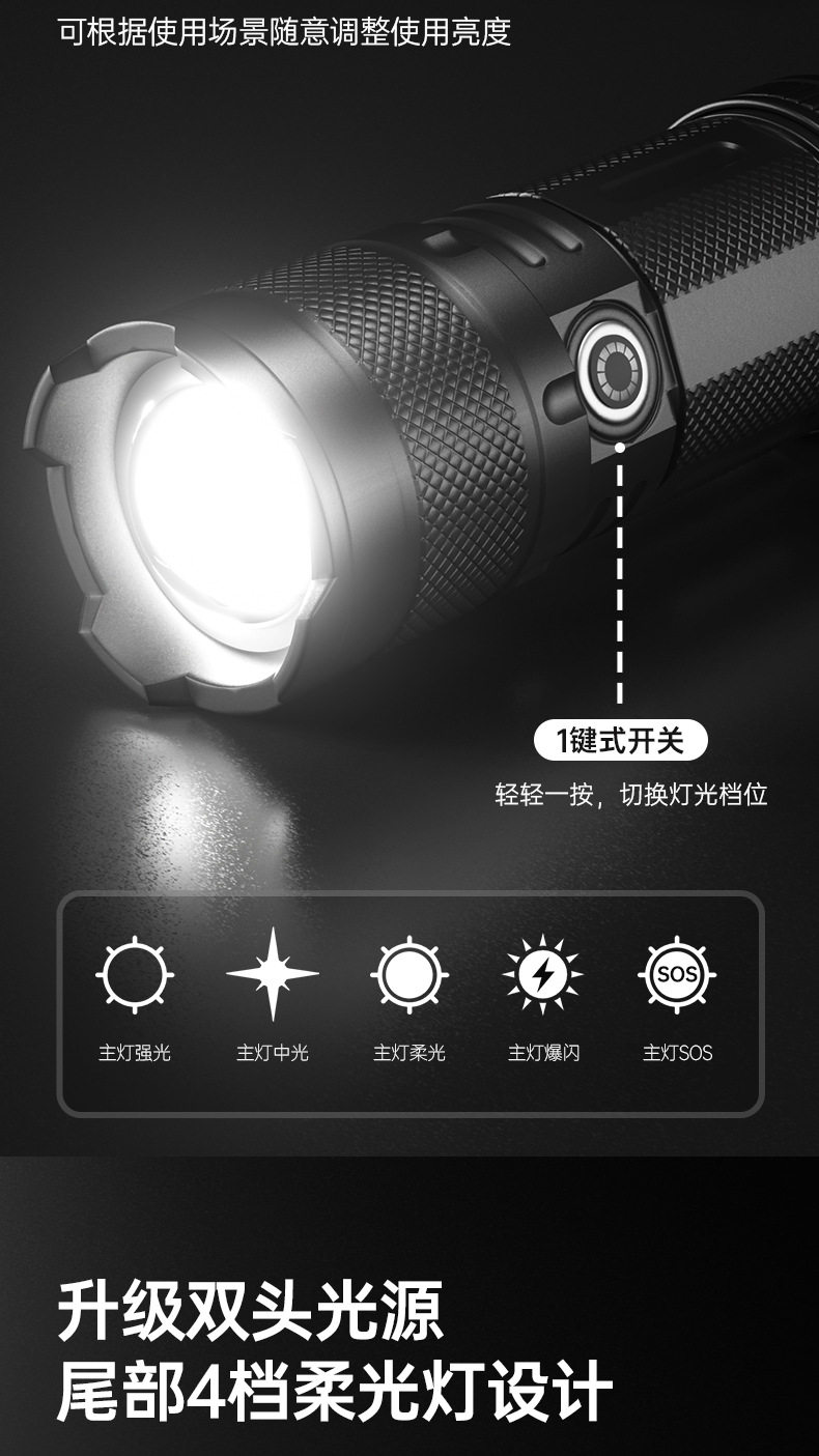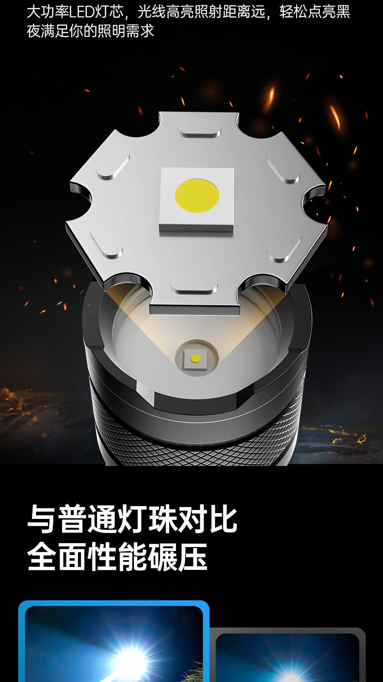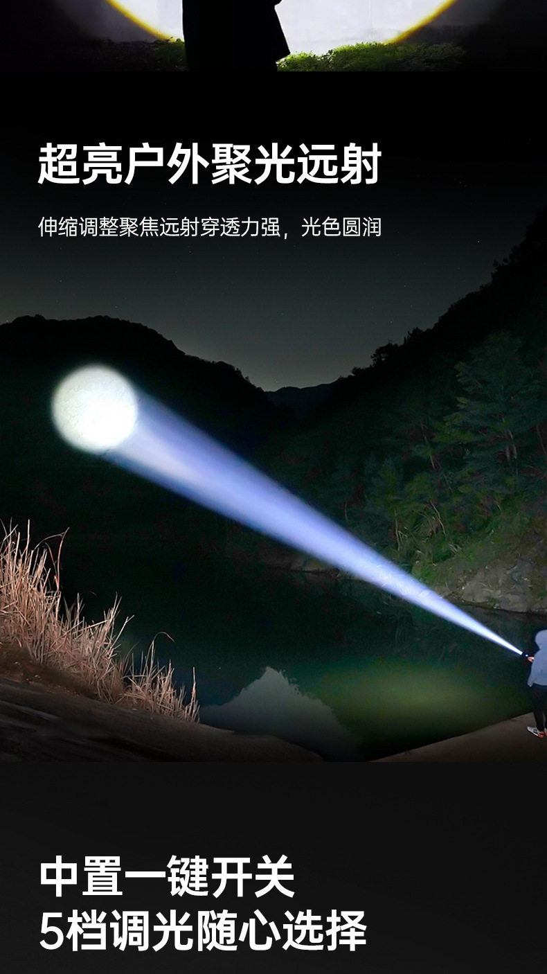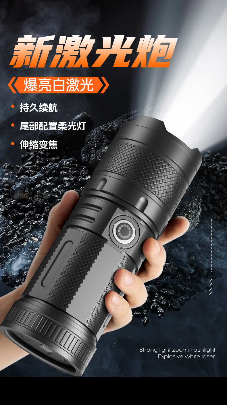 Strong light LED rechargeable multifunctional flashlight outdoor camping light retractable laser zoom tail light long-shot large flood light
