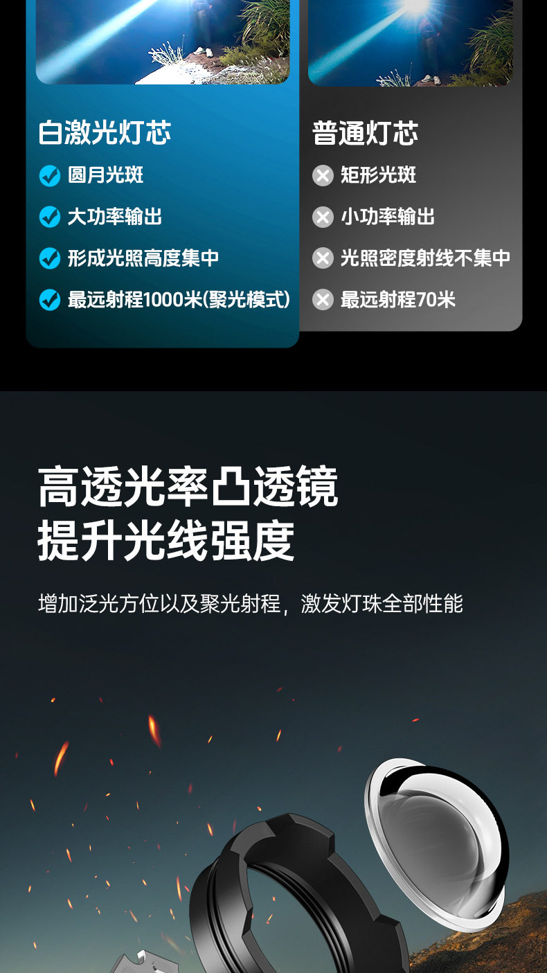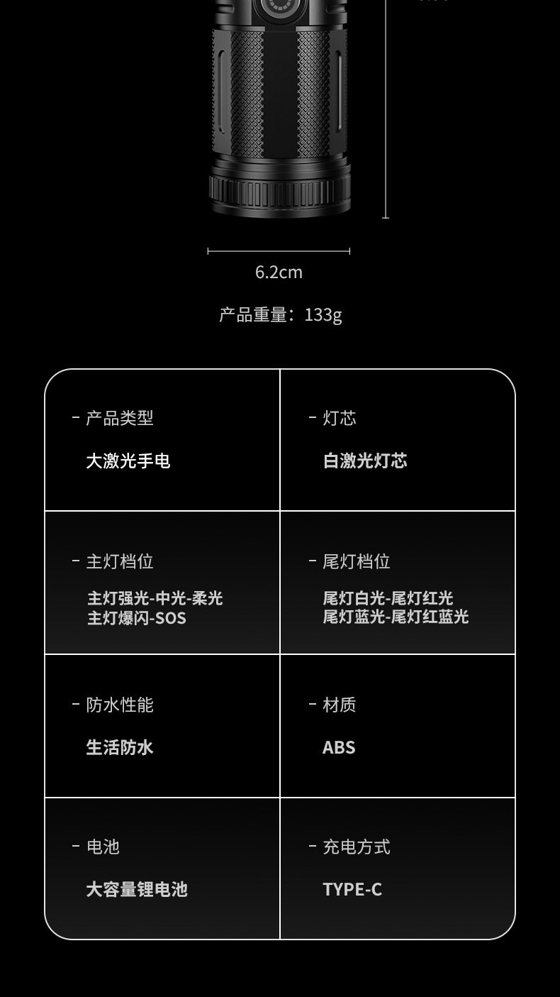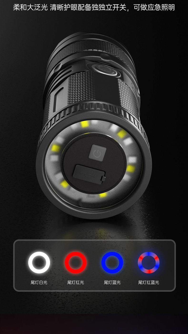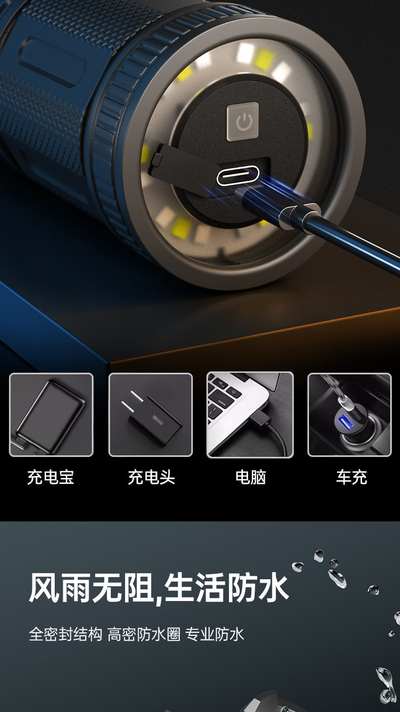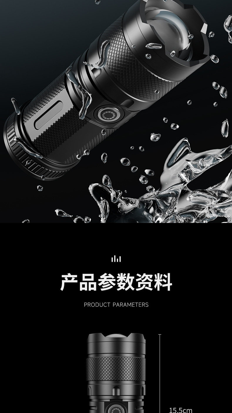 Strong light LED rechargeable multifunctional flashlight outdoor camping light retractable laser zoom tail light long-shot large flood light