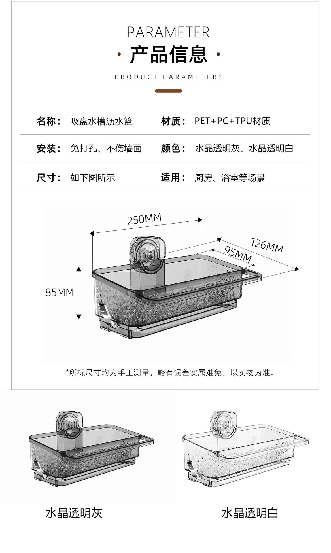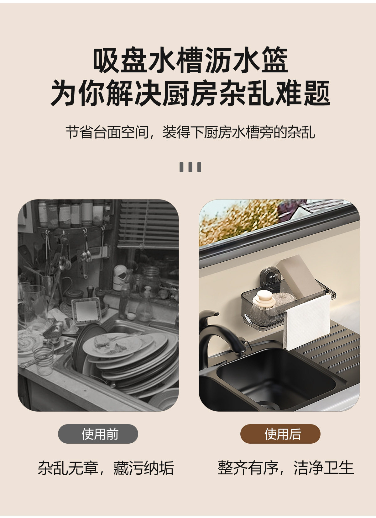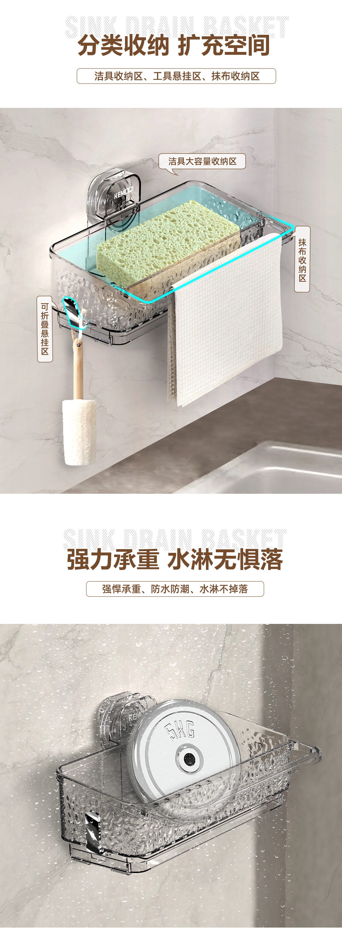 Suction cup sink draining rack rag rack multi-functional household kitchen draining basket storage rack