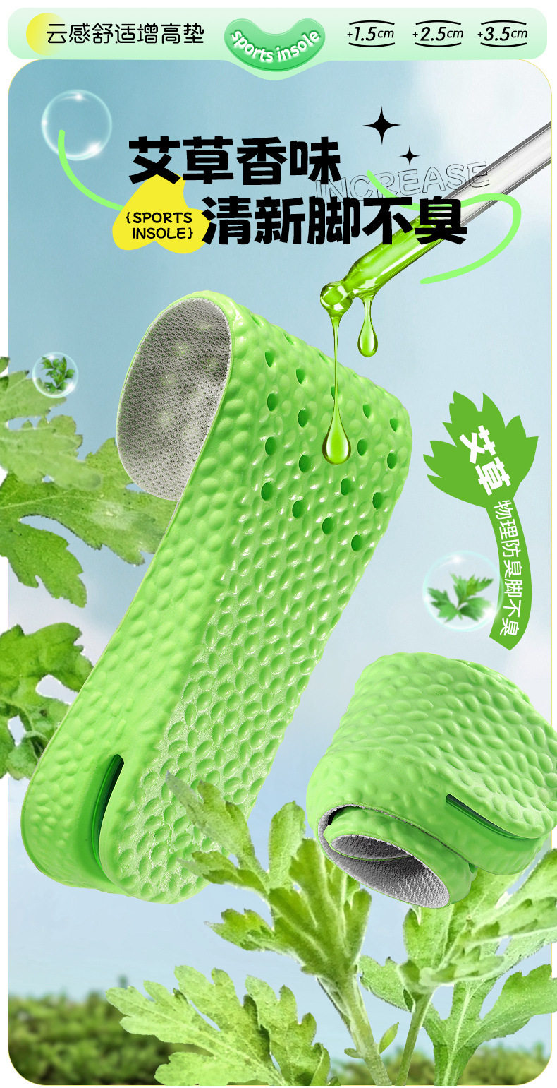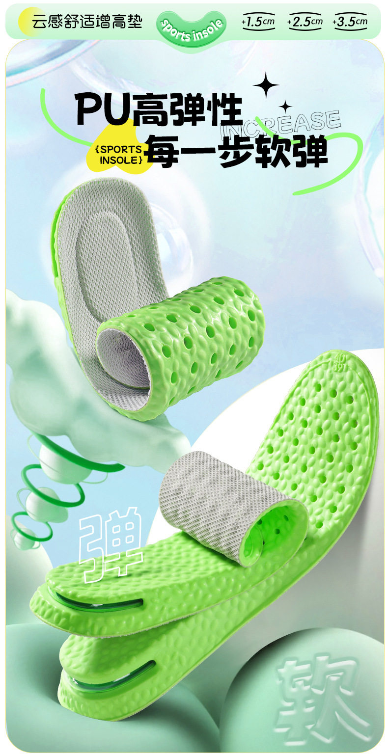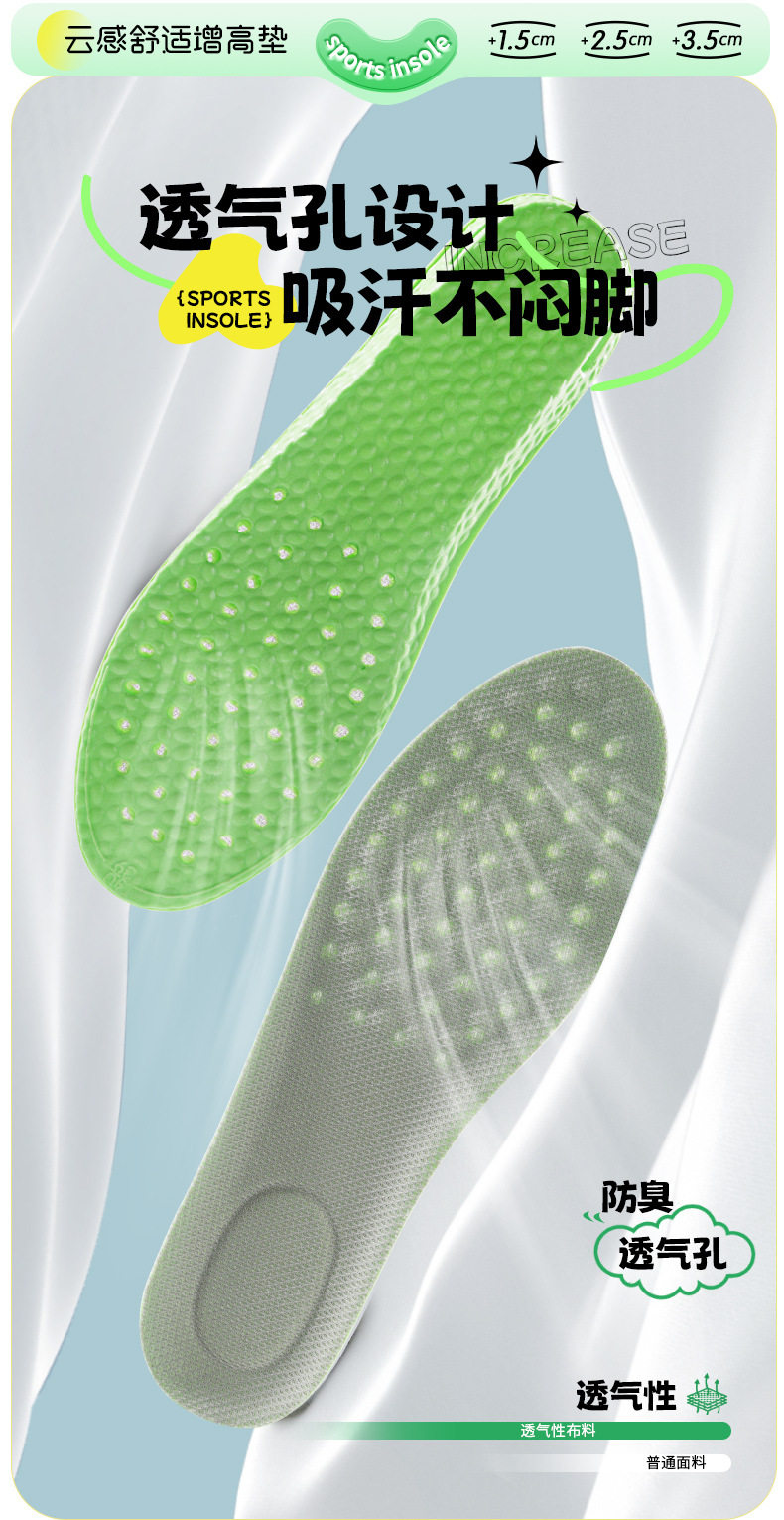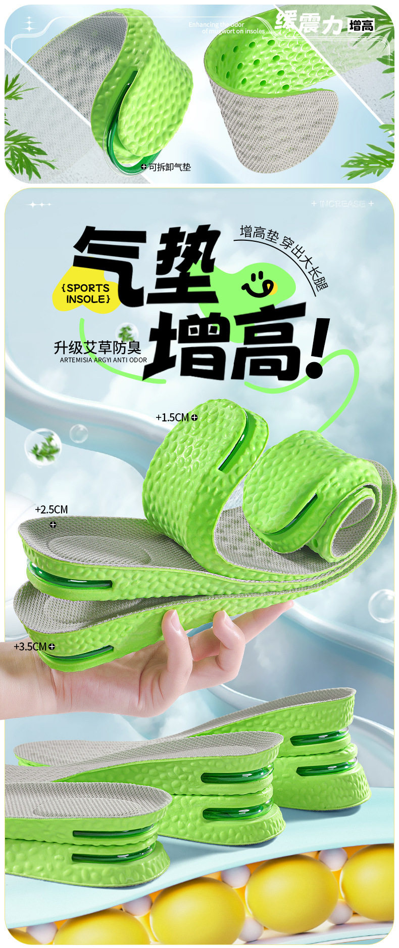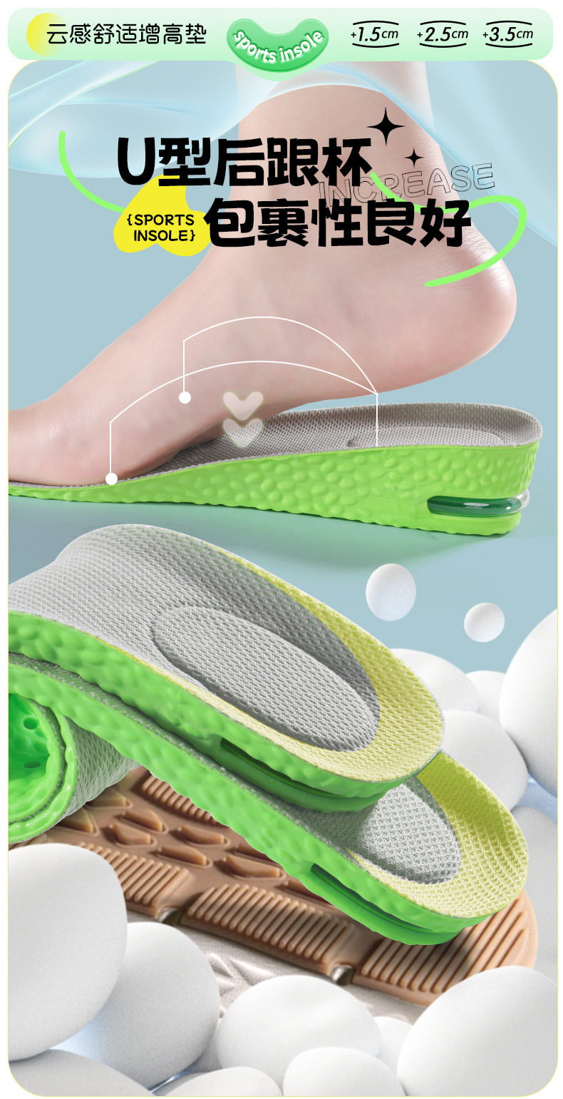 Air Cushion Sports Heightening Insole for Men and Women No Collapse Invisible Full Palm Shock Absorption Inner Heightening Insole Sweat Absorbing Breathable Deodorant