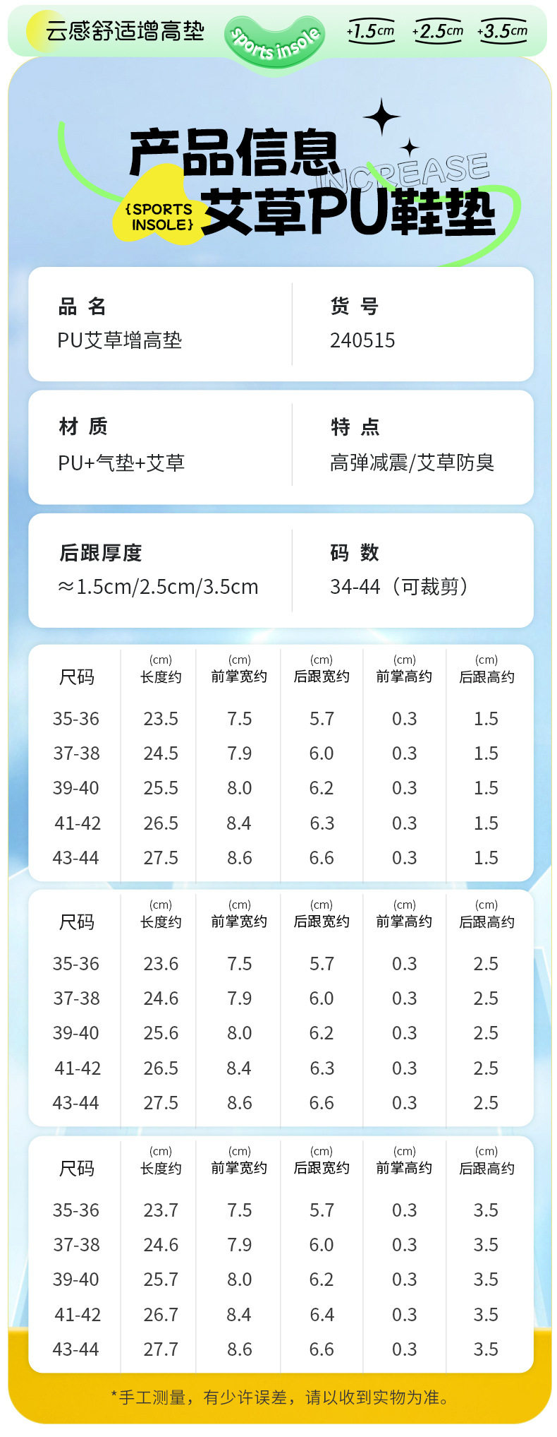 | Color | Air cushion increased -1.5cm,Air cushion increased -2.5cm,Air cushion height -3.5cm |