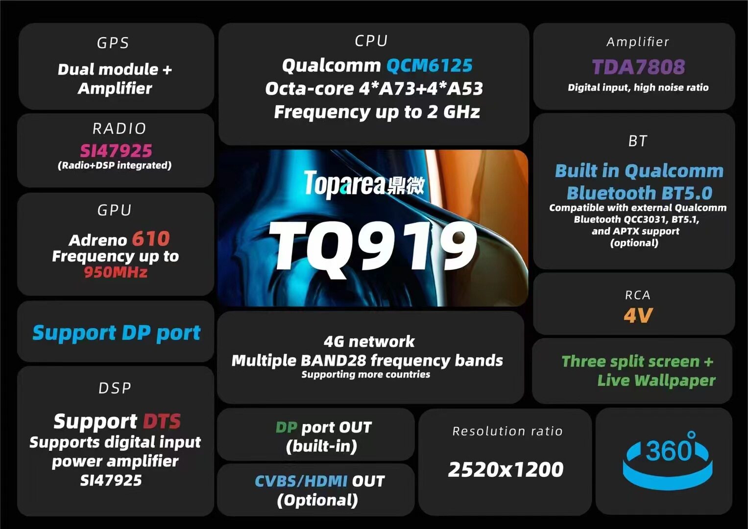 Dingwei Qualcomm TQ919 eight nuclear changeable host Android car large screen navigation GPS intelligent navigation carplay