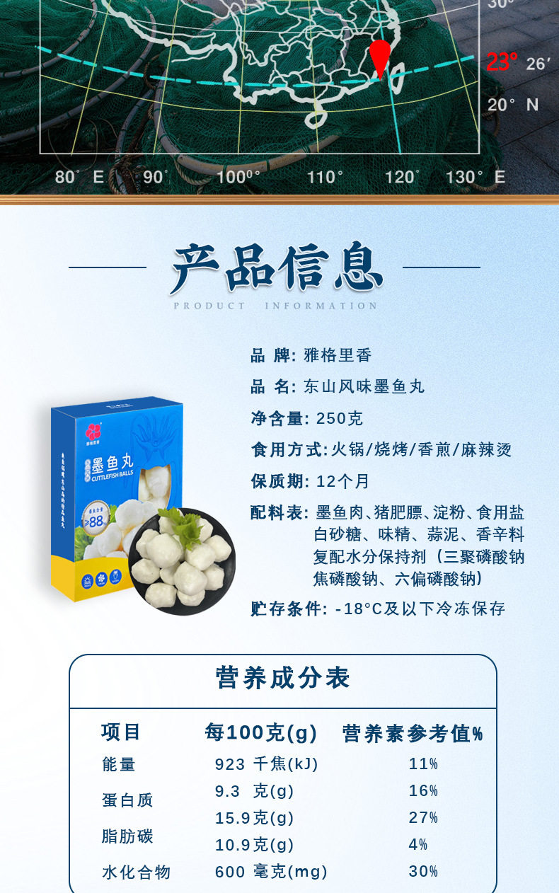 [Yagurixiang] Dongshan high-end cuttlefish balls with fragrant black ink balls and flower balls without surimi 250 g/box