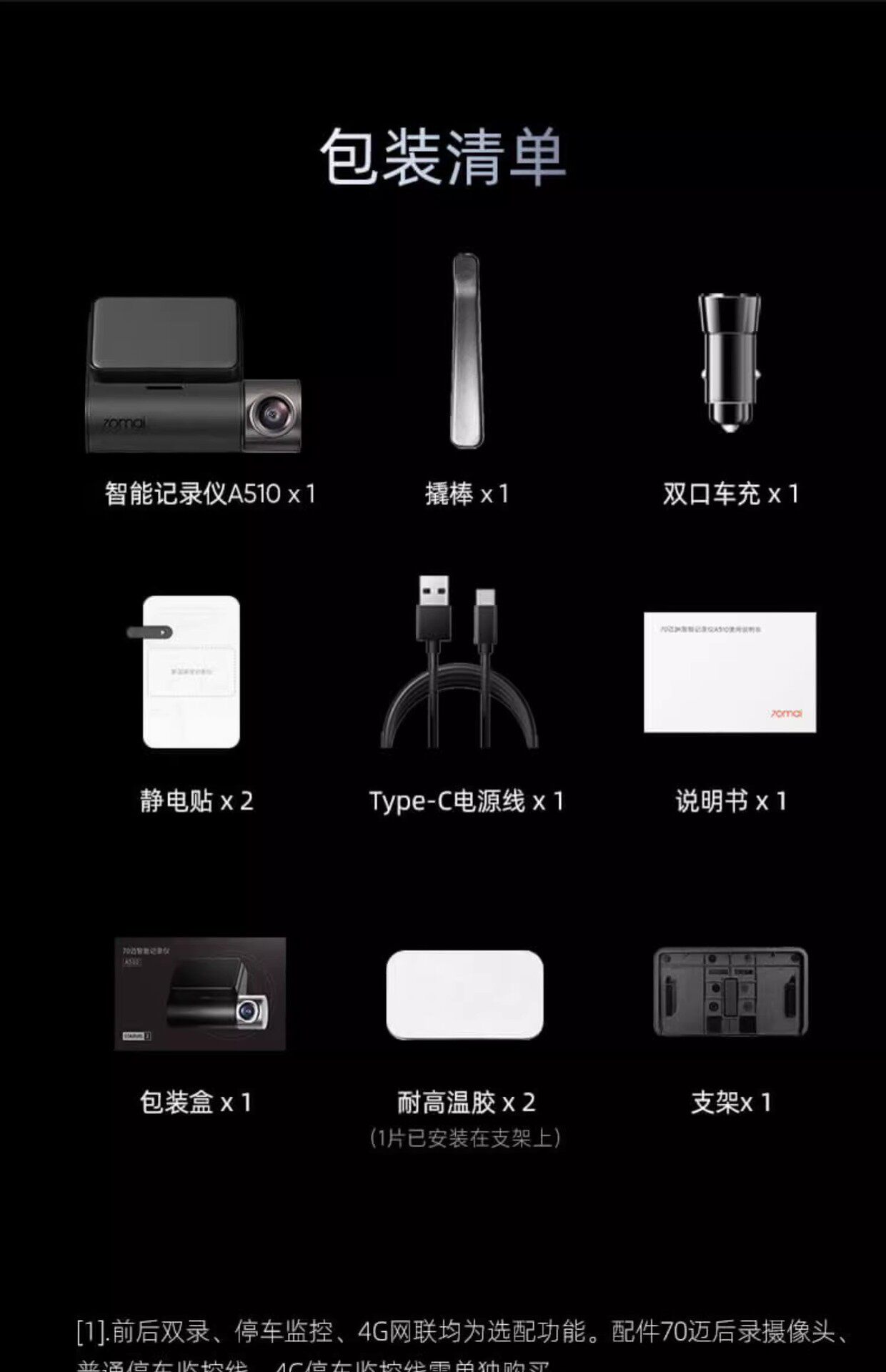 | color classification | 70 miles RC11,70-mile driving recorder A510,A510+64G,A510+128G,A510+256G,A510 Rear Recording Camera RC11,A510 Post Record RC11 64G,A510 Post Record RC 11 128G,A510 Post Record RC 11 256G,A510 64G monitoring line UP03,A 510 128G monitor line UP03,A 510 256G monitor line UP03,A510+64G+RC11+UP03,A510+128G+RC11+UP03,A510+256G+RC11+UP03 |