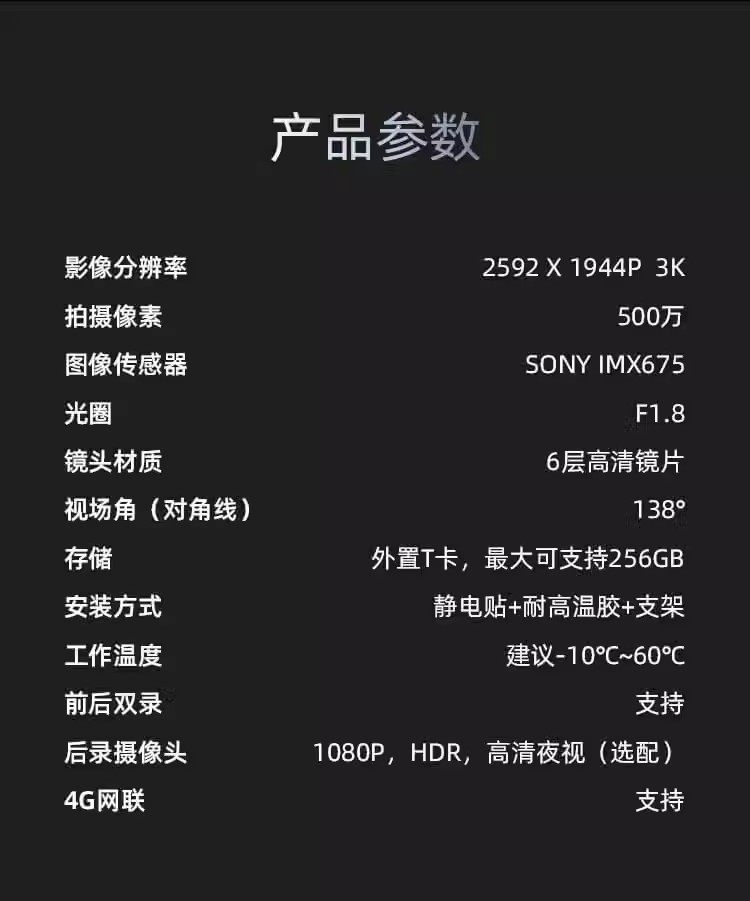 | Function | GPS Navigation,Positioning,Loop Video,Parking monitoring,Night Vision Light |