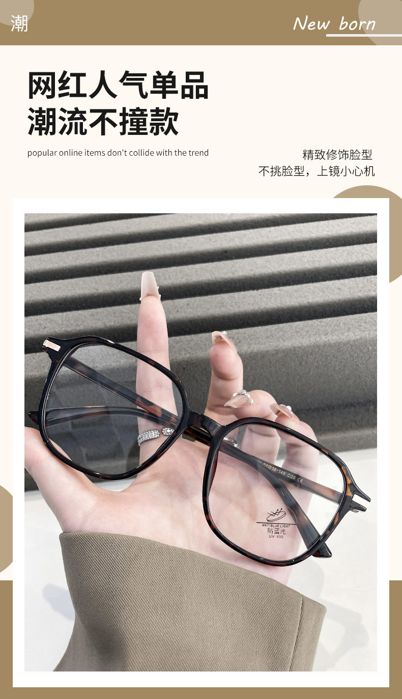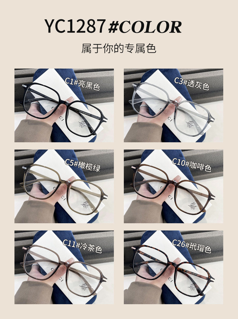 YC1287 New Large Frame Glasses Frame Women's Big Face Round Slimming Plain Face Myopia Glasses Available for Men Korean