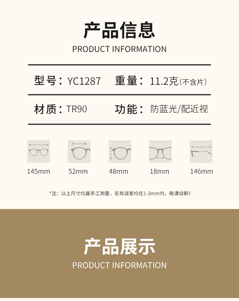 | Glasses structure | Full framework |