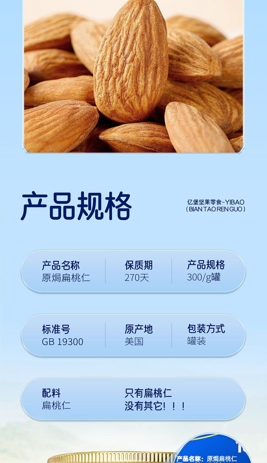 | Flavor | Original almond kernel [300g*1 can],Salt-baked almonds [300g*1 can] |