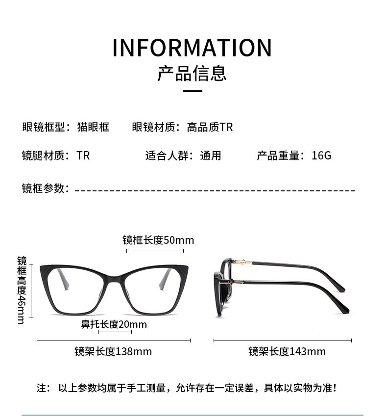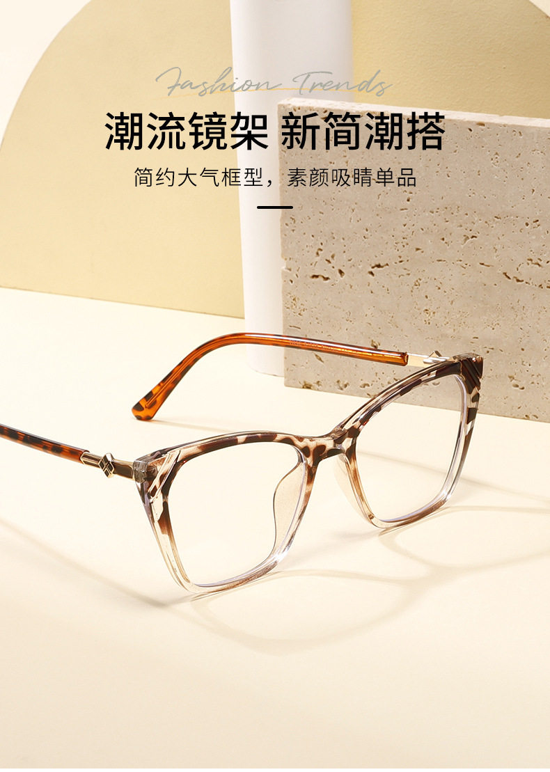 TR90 cross-border retro cat's eye frame anti-blue light flat mirror European and American fashion decorative glasses frame can be equipped with myopia