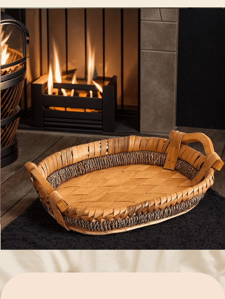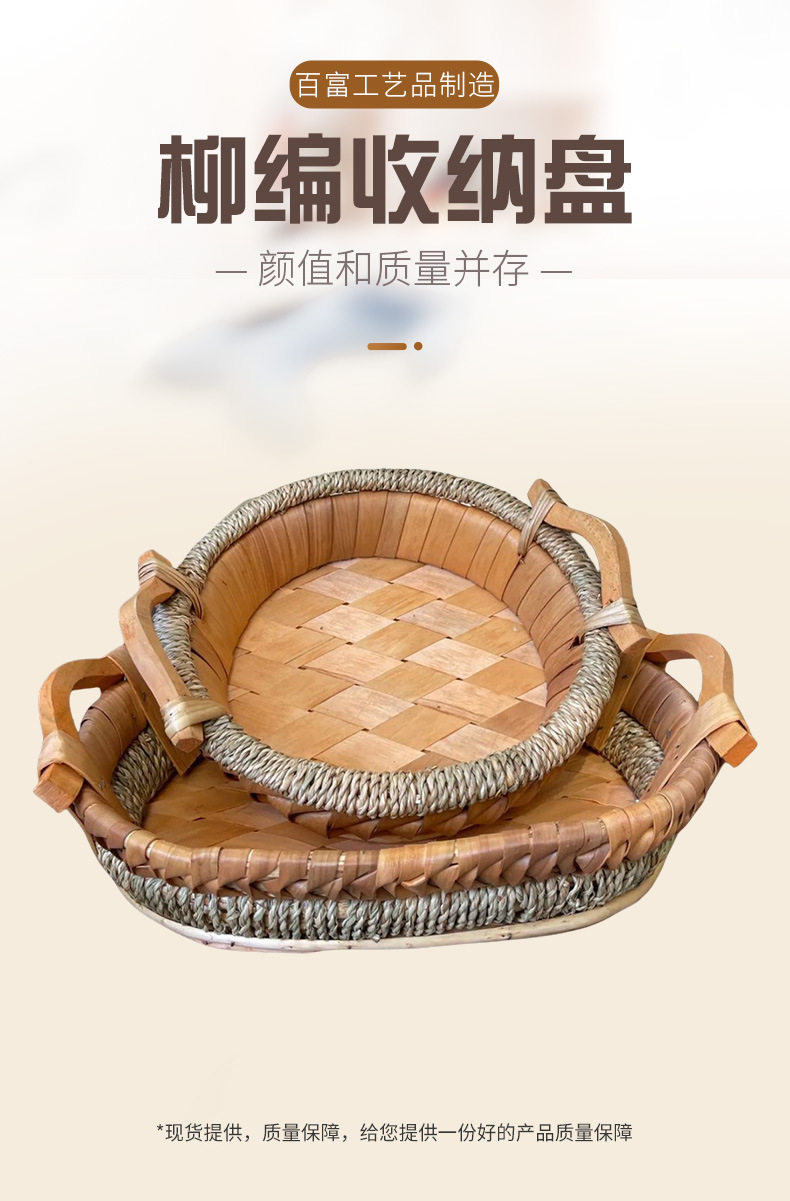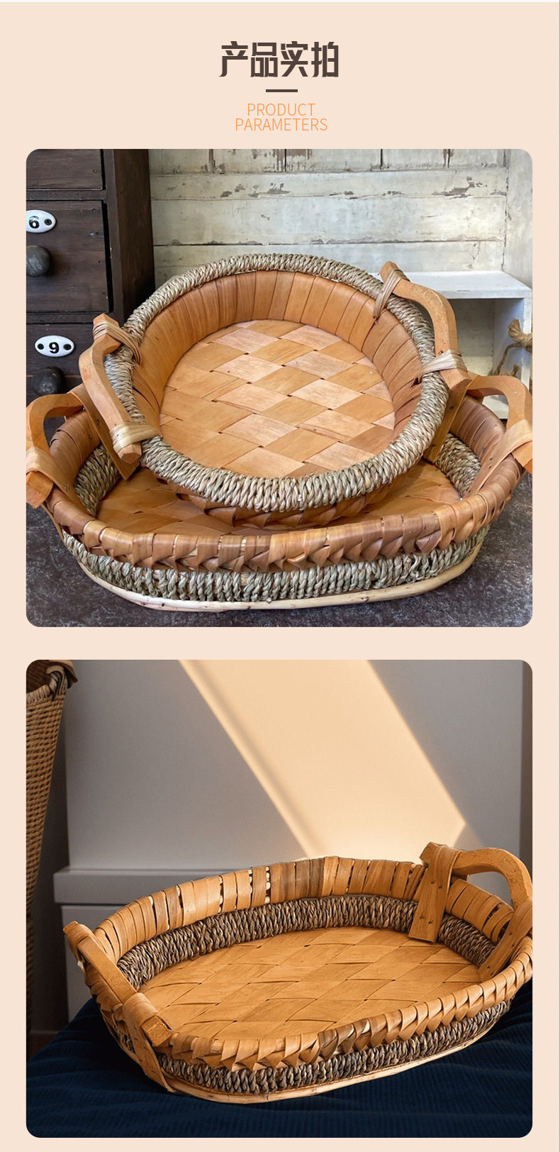 Wicker Storage Tray Fruit Tray Storage Basket Sundries Storage Basket Snack Household Bread Basket Vintage Storage Tray