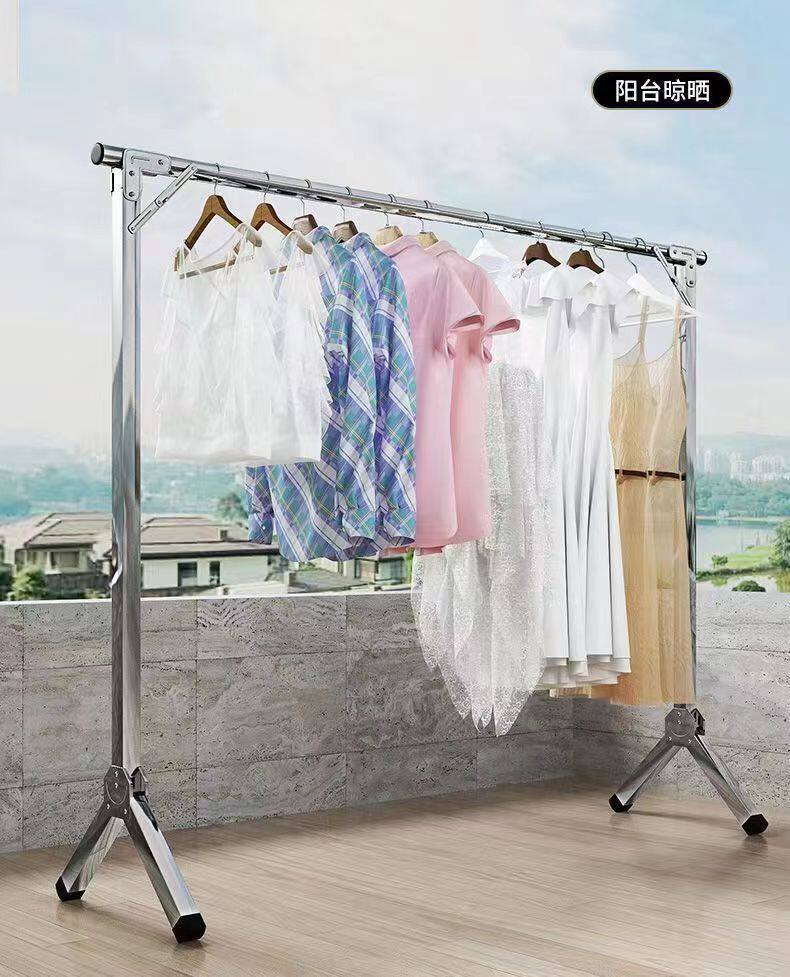 Floor folding telescopic drying rack stainless steel single pole drying rack drying rack indoor bedroom hanging rack wholesale