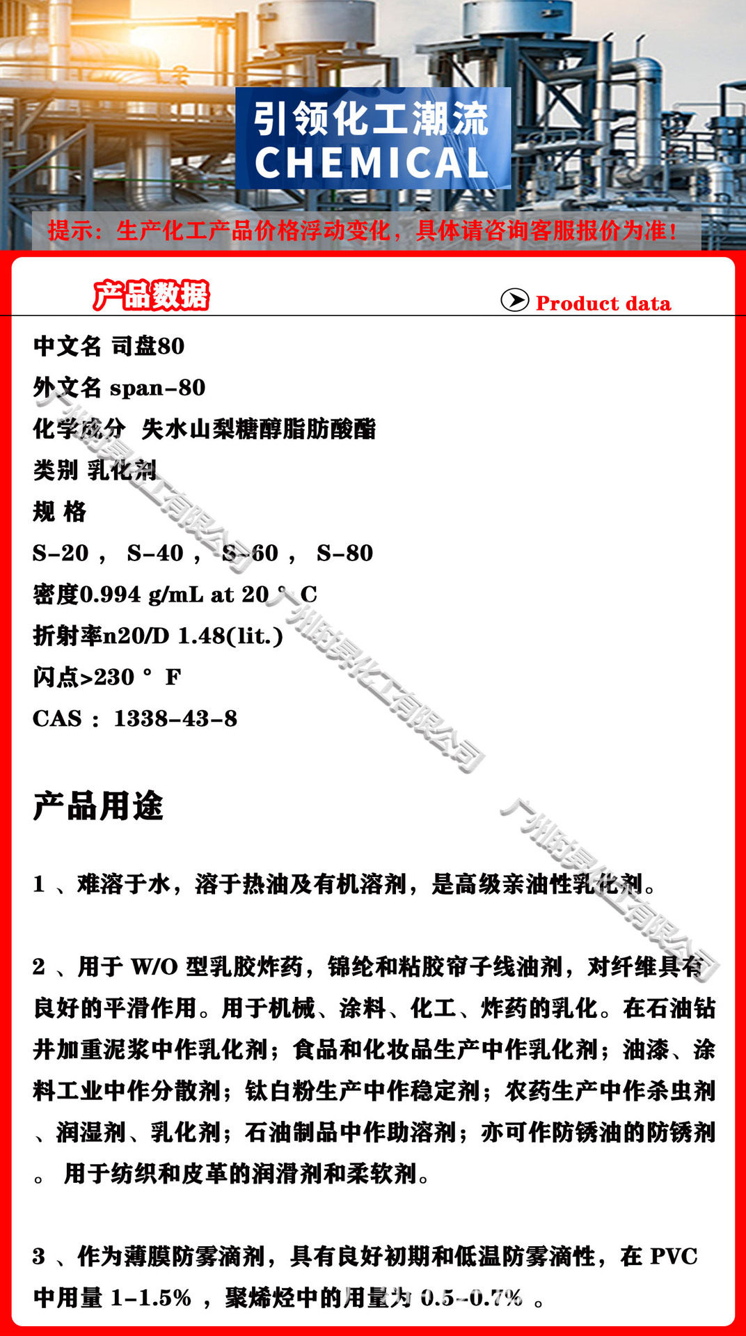 Span 80 lipophilic emulsifier non-ionic surfactant paint coating dispersant one kilogram