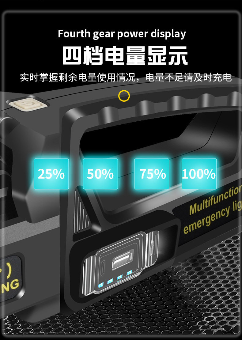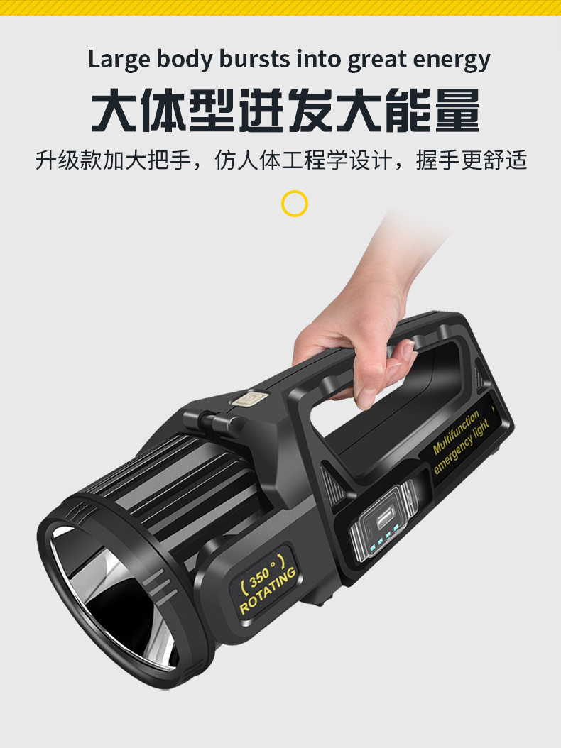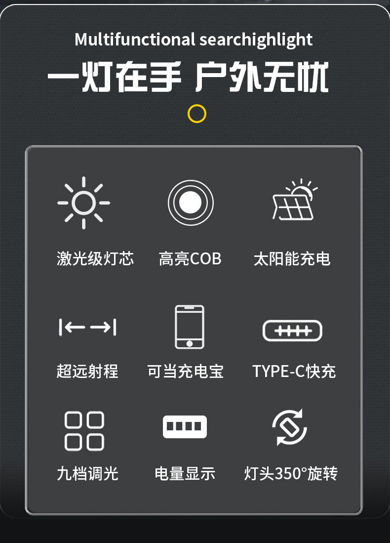 2024 Cross-Border Rotating Multifunctional Solar Portable Searchlight Flashlight High-Power Lighting Solar Strong Light