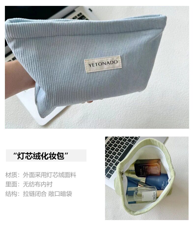 New Simple Corduroy Large Capacity Cosmetic Bag Travel Skin Care Wash Bag Hand Bag Student Storage Bag