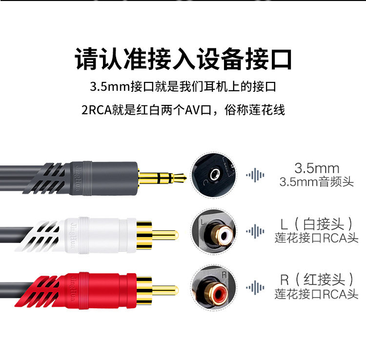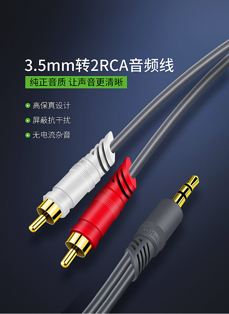 Jinghua 3.5 One-to-two Audio Cable 3.5 to 2RCA Double Lotus Computer Audio Mobile Phone Amplifier Audio Cable