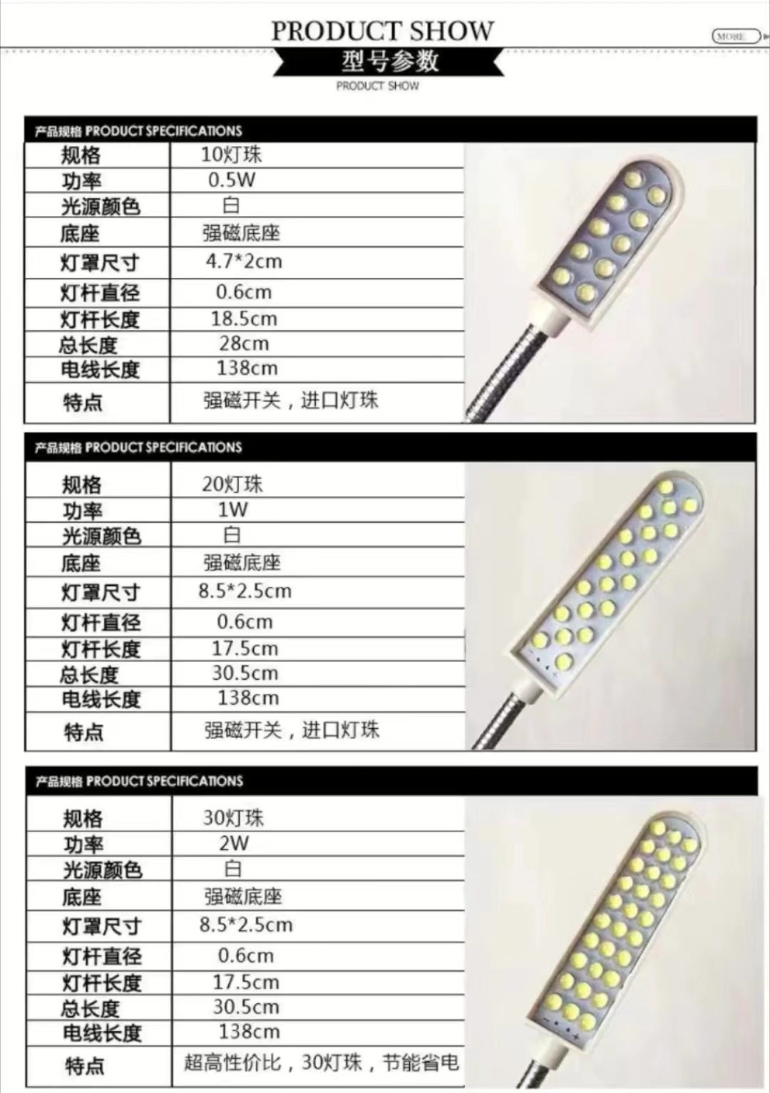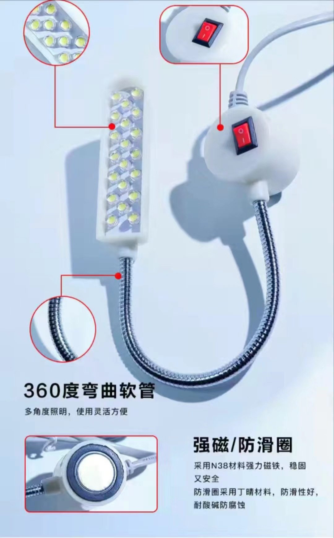 Wholesale sewing machine lamp 30 bead led clothes lamp strong magnetic work light 20 bead flat car lighting professional work light