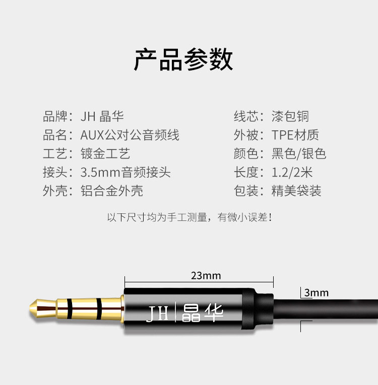 Jinghua aux Audio Cable Double-ended Docking 3.5mm Audio Cable Car AV Audio Headphone Extension Cable Speaker Cable
