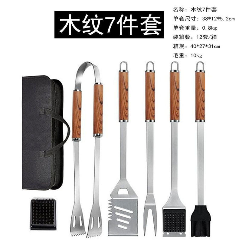 BBQ suit wood grain 7-piece BBQ cross-border barbecue utensils combination suit cloth bag packaging