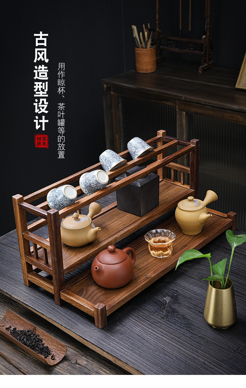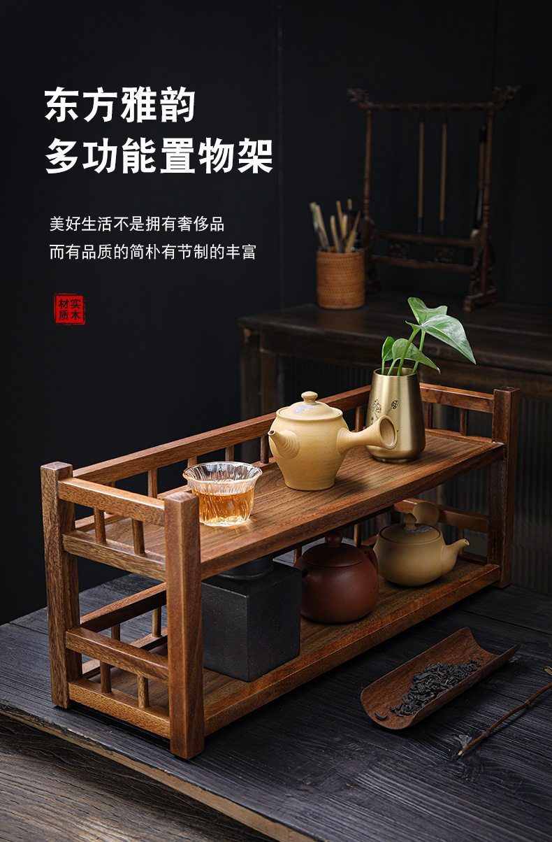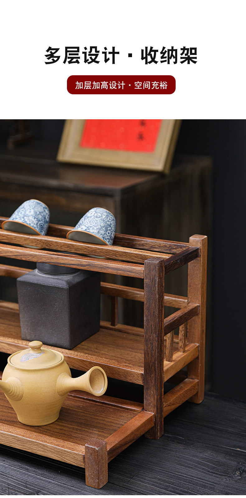 Walnut Desktop Storage Rack Tea Table Two-Layer Three-Layer Kung Fu Tea Cup Storage Rack