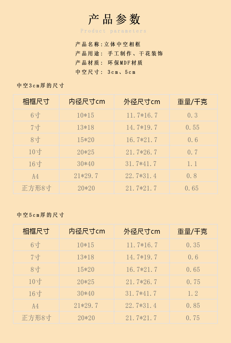 | Frame size | 6inch (inner diameter 10*15) can be placed or hung,7inch (inner diameter 13*18) can be placed or hung,8inch (inner diameter 15*20) can be placed or hung,10inch (inner diameter 20*25) can be hung or placed,A4 (inner diameter 21*29.7) can be hung or placed organic glass,16inch (inner diameter 30*40) wall-mounted plexiglass,Square 8inch (inner diameter 20*20) can be placed or hung,Decorative accessory bag |