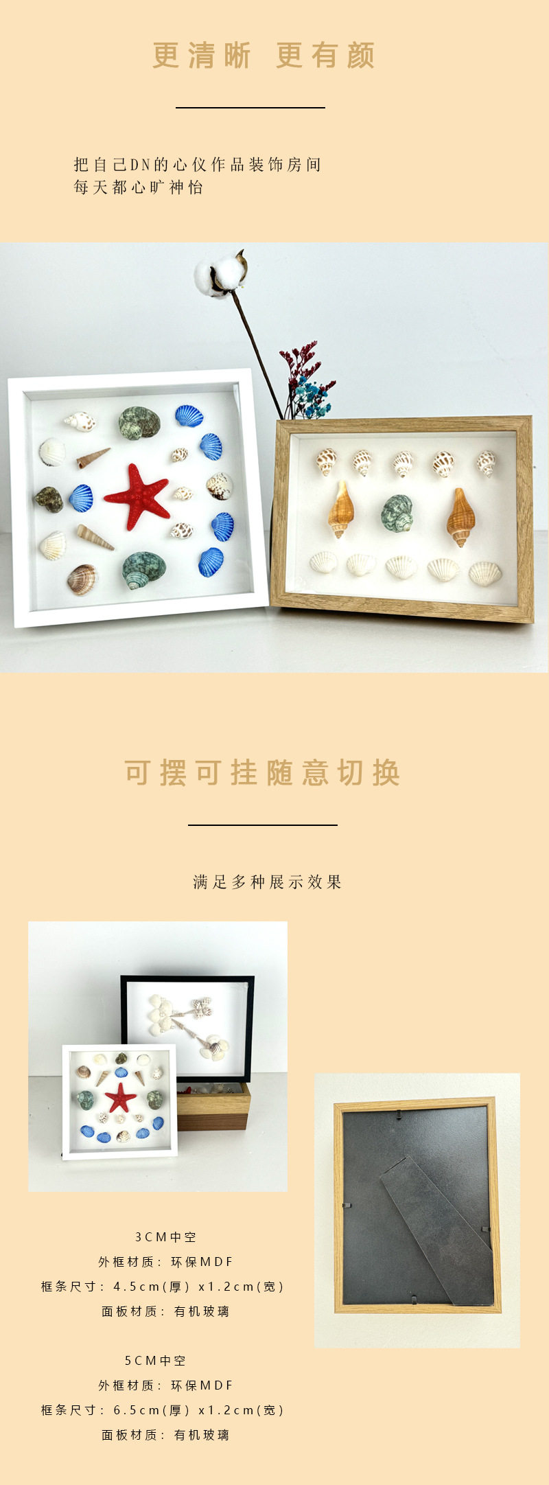 Stereo Hollow Photo Frame Specimen Frame DIY Handmade Table Seaside Shell Conch Dried Flower Display Picture Frame Memorial