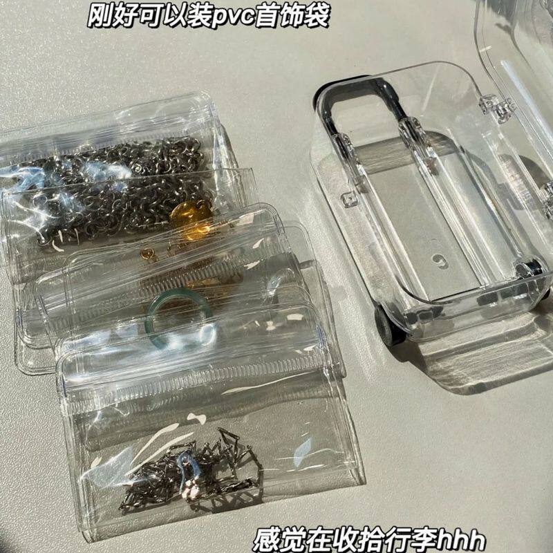 Mini Ultra-Small Trolley Case Storage Box, Direct Sales from the Manufacturer, Retractable Wheels, Movable, Transparent, Cute for Jewelry