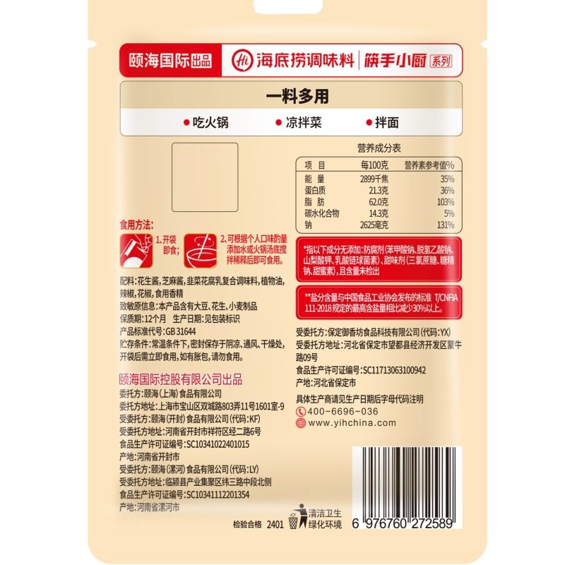 Haidilao Thin Salt Hot Pot Dipping Sauce Original Spicy Peanut Butter Sesame Sauce Noodles Cold Skin Hot Pot Ingredients Seasoning
