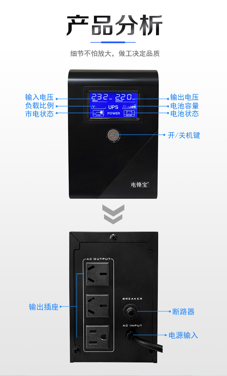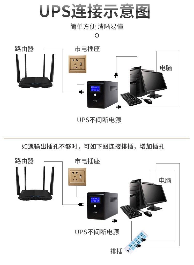 Ups Uninterruptible Power Supply 650Va360W110V220V750Va Computer Monitoring Power Outage Protection Export Customization