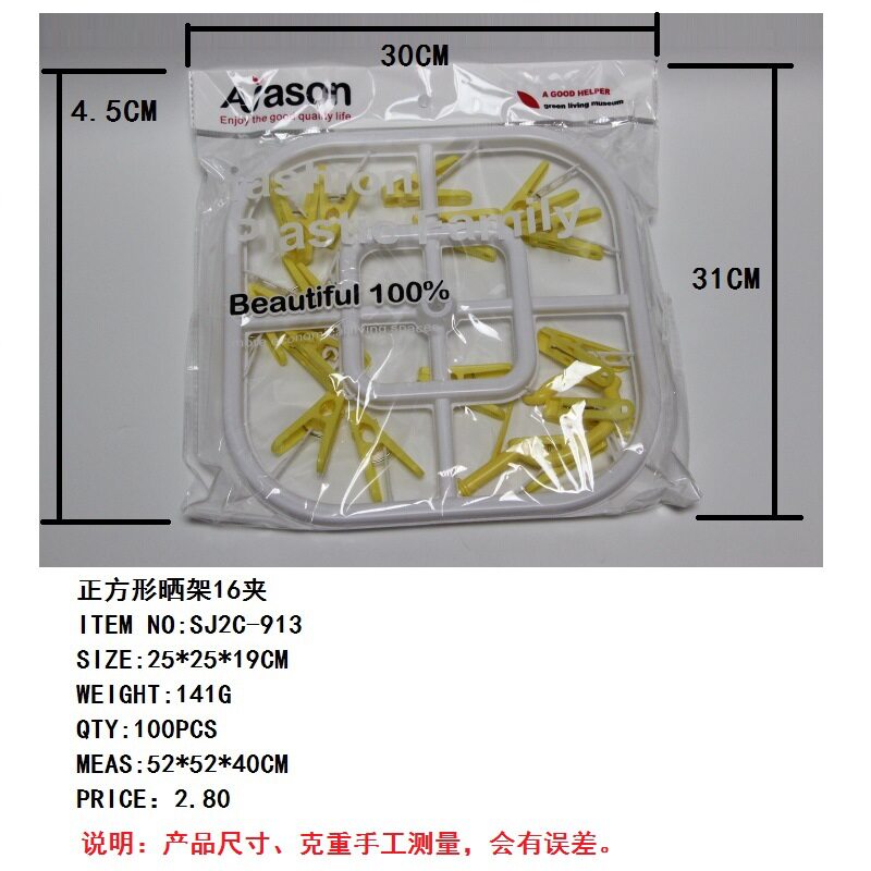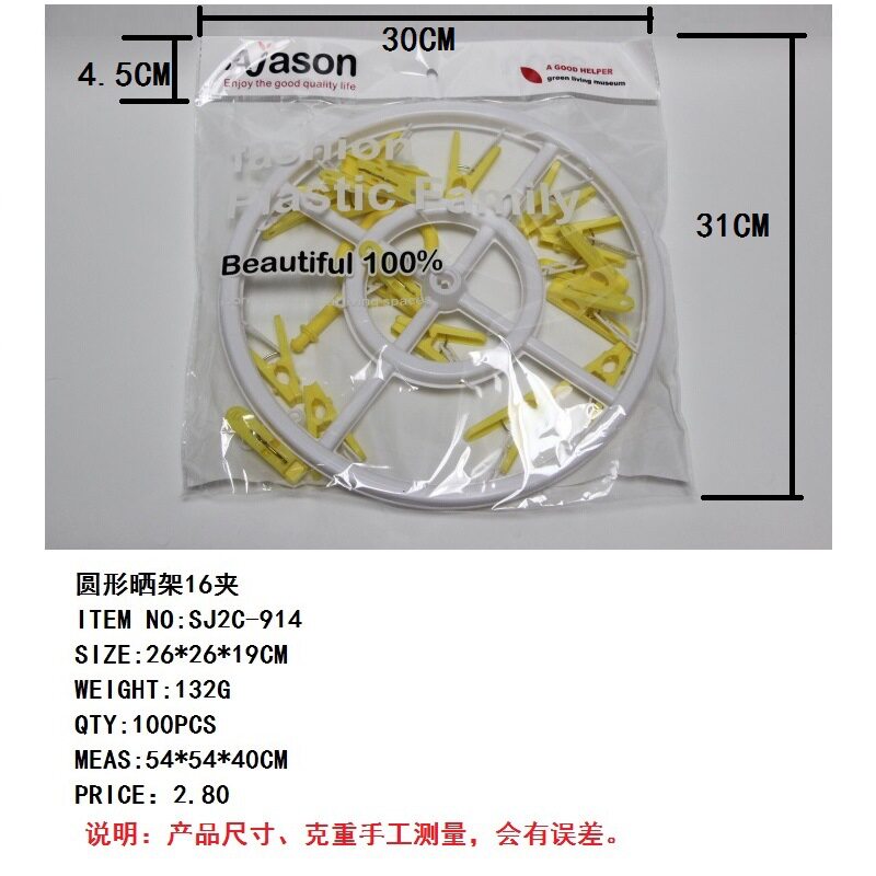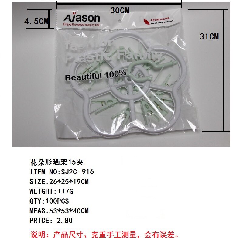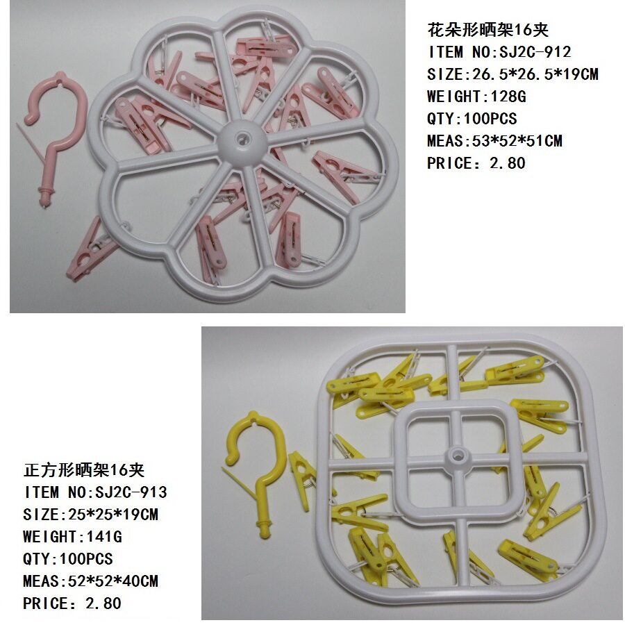 | Color | Flower Shaped Drying Rack 16 Clip SJ2C-912,Square drying rack 16 clip SJ2C-913,Round sun rack 16 clip SJ2C-914,Oval drying rack 16 clip SJ2C-915,Flower-Shaped Drying Rack 15 Clamp SJ2C-916 |