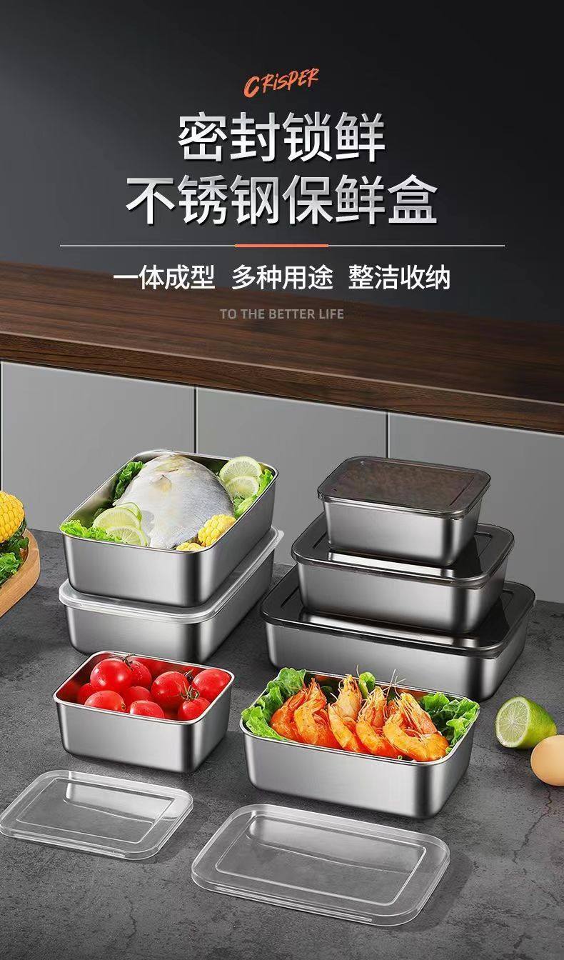 Explosive Stainless Steel Preservation Box with Lid Square Plate Refrigerator Storage Box Steamed Fish Grilled Fish Plate Grilled Food Plate Fruit Plate