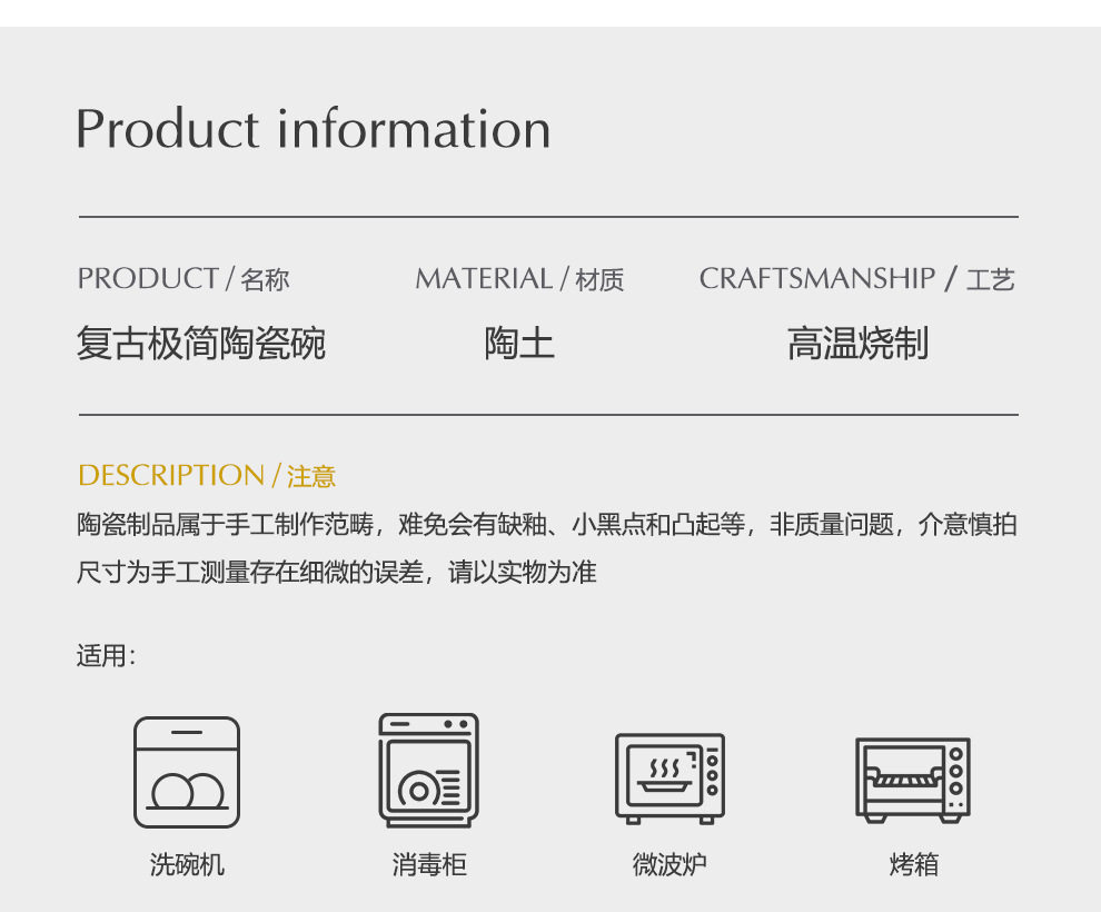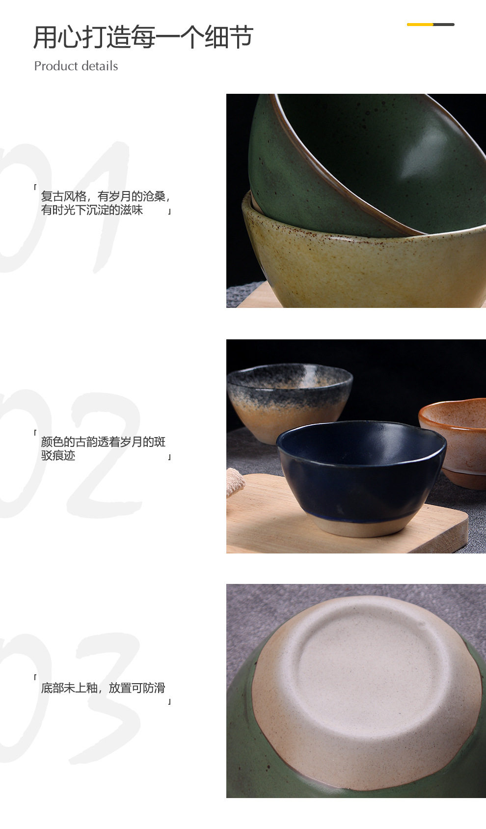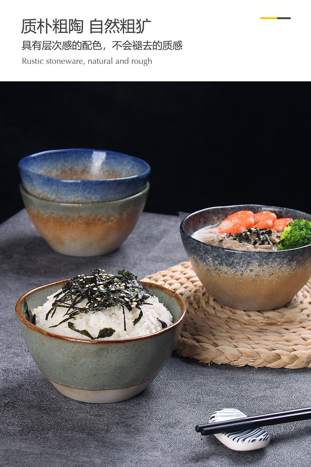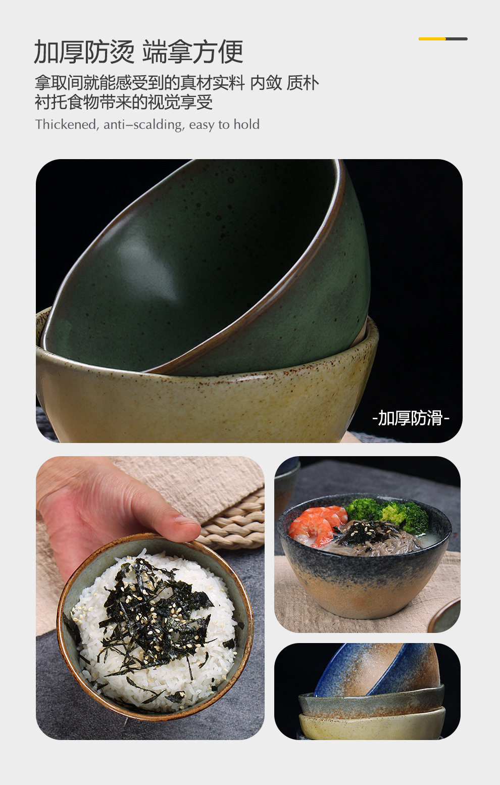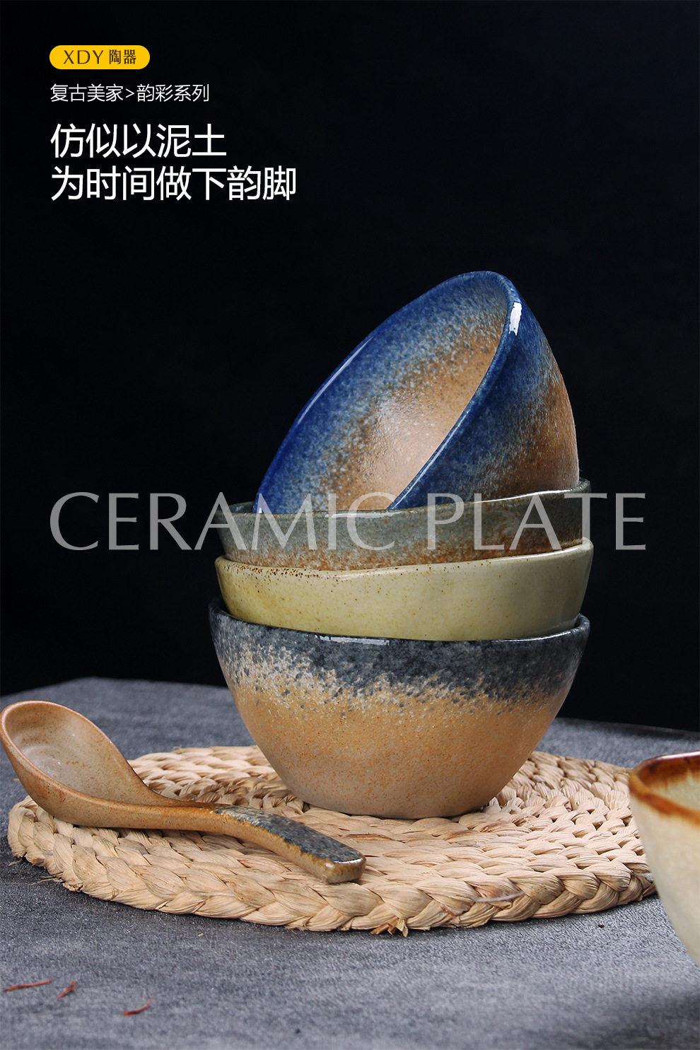 New Vintage Minimalist Ceramic Bowl Underglaze Color Craft Household Noodle Bowl Exquisite Open Rice Bowl Housewarming Gift Wholesale
