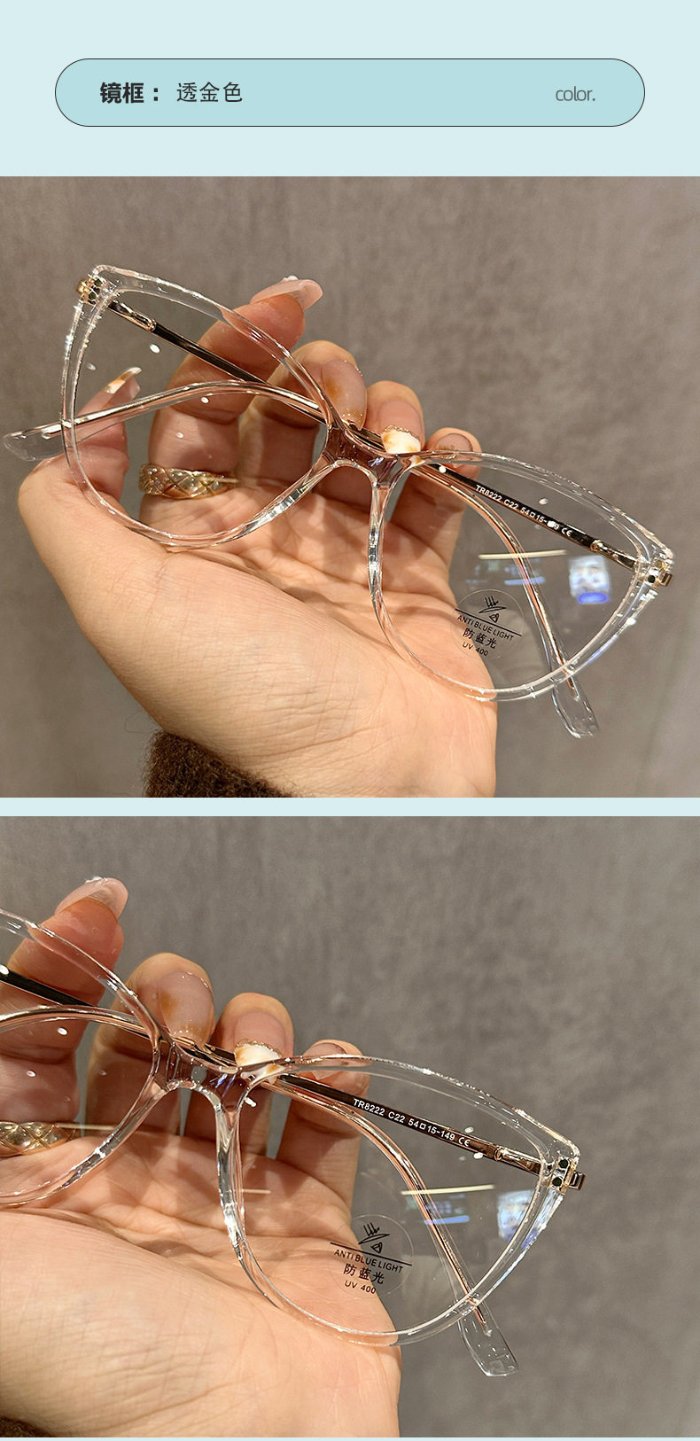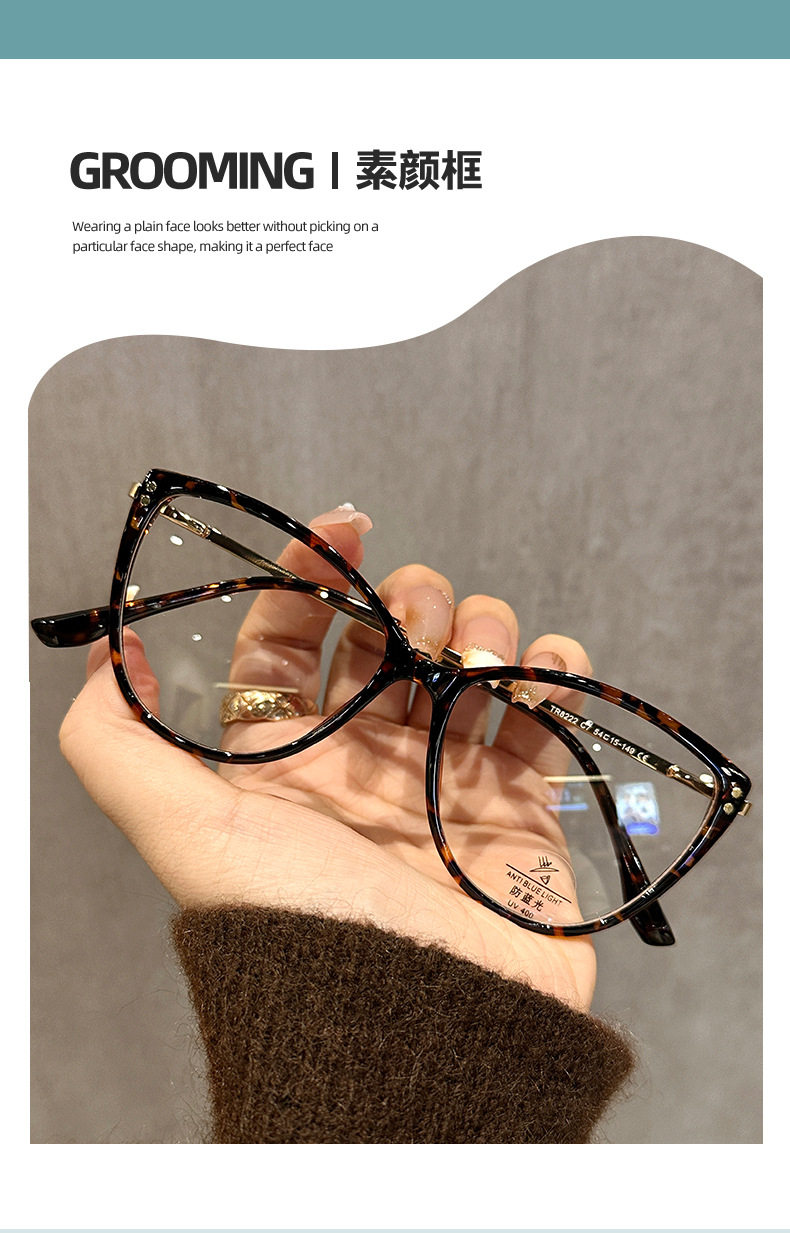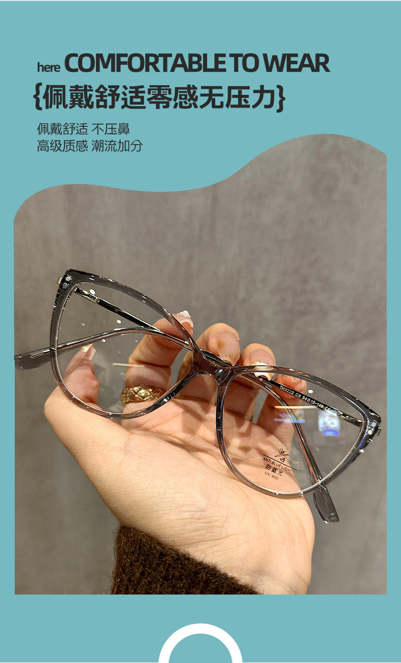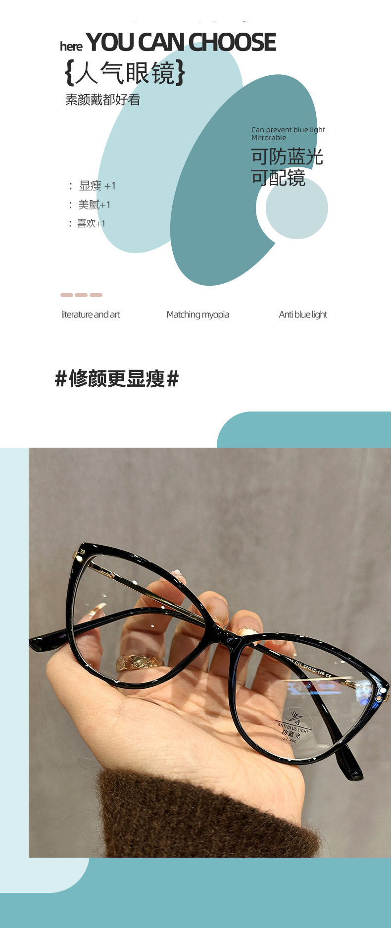 Cat's Eye Fashion Glasses Frame Women's Large Frame Plain Face Slimming Ultra Light Fashionable Eyes Frame Trendy Men's 8222