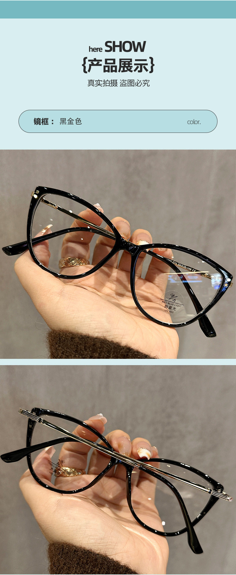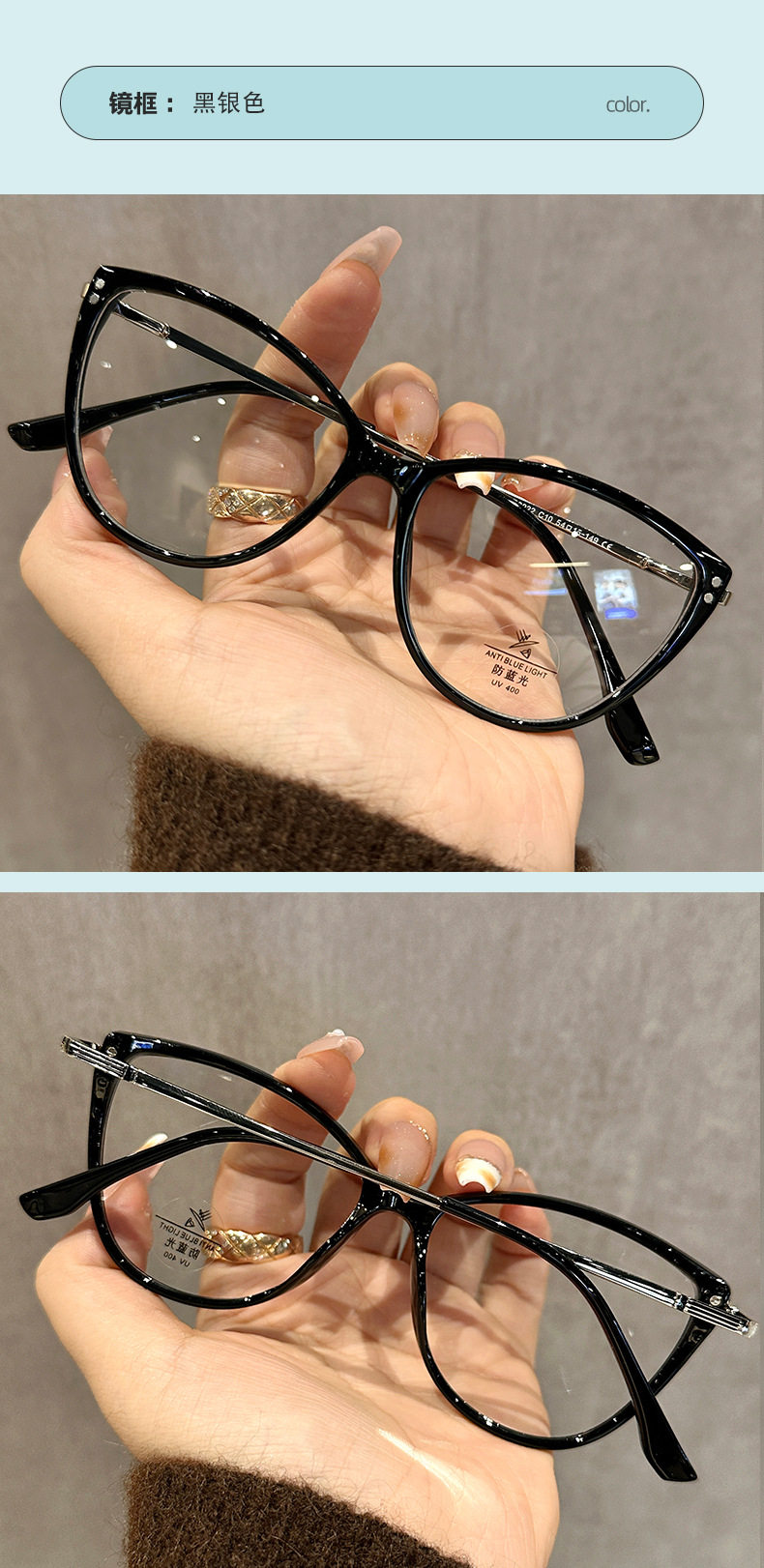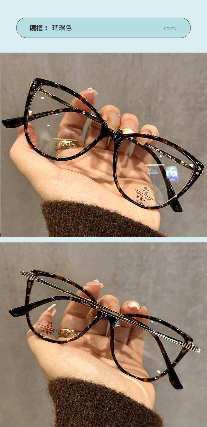 Cat's Eye Fashion Glasses Frame Women's Large Frame Plain Face Slimming Ultra Light Fashionable Eyes Frame Trendy Men's 8222
