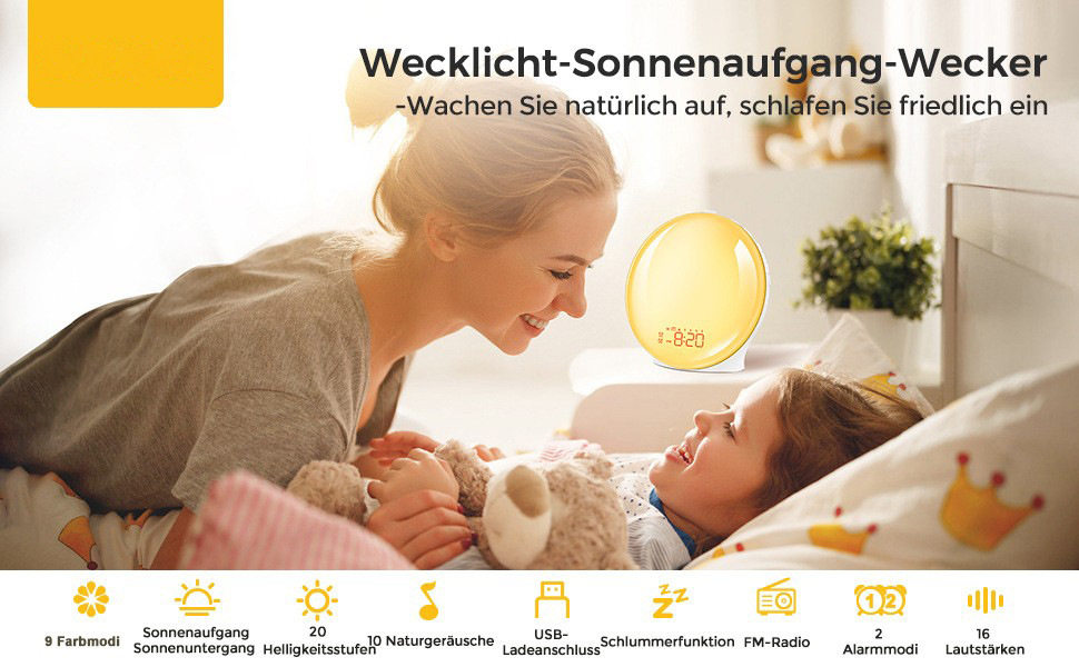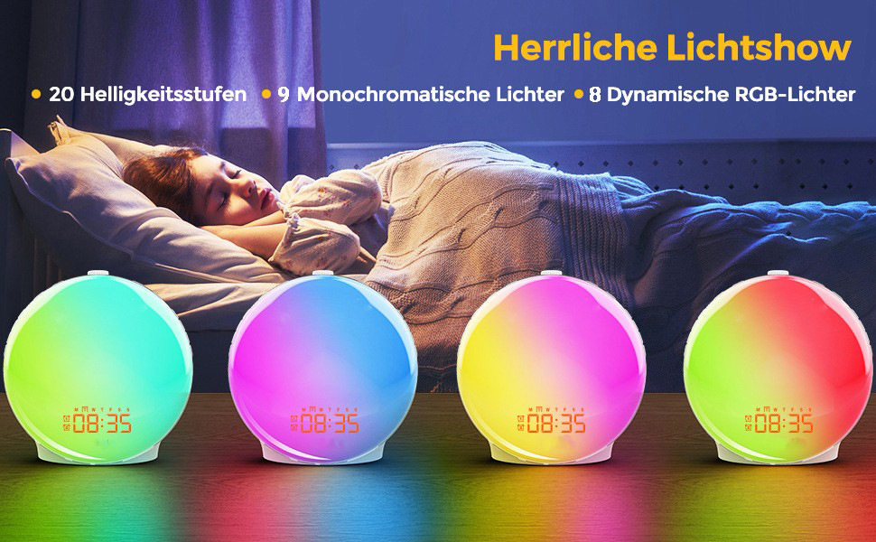 Colorful wake-up light simulates sunrise and sunset RGB atmosphere light cross-border bedroom bedside light white noise night light