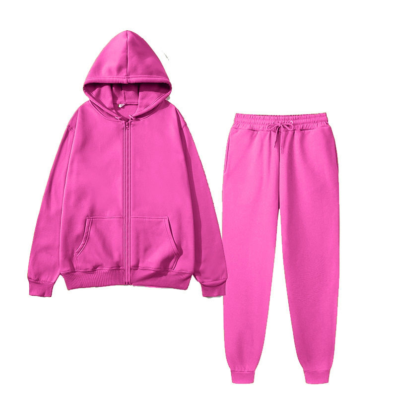 Foreign trade men's and women's solid color sportswear suit fashion casual autumn and winter warm hooded cardigan sweater sweater pants