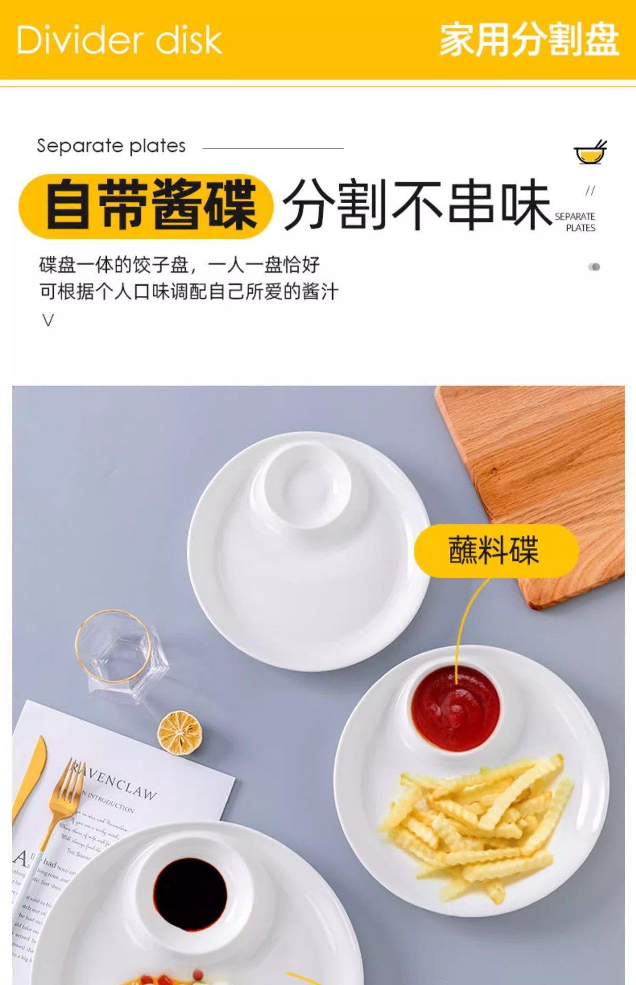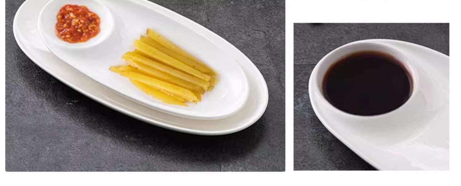 Wholesale Pure White Ceramic Dumplings Plate with Vinegar Dish White Burning Shrimp Plate Salmon Sashimi Round Denier Dish Plate