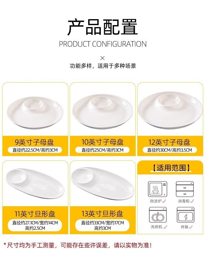 | Color | 9-inch round sub-mother plate,10 inch round sub-mother plate,12 inch round sub-mother plate,11-inch denier daughter mother plate,13-inch denier daughter mother disk,10-inch five-fruit plate,12-inch five-fruit plate,14-inch five-fruit plate |