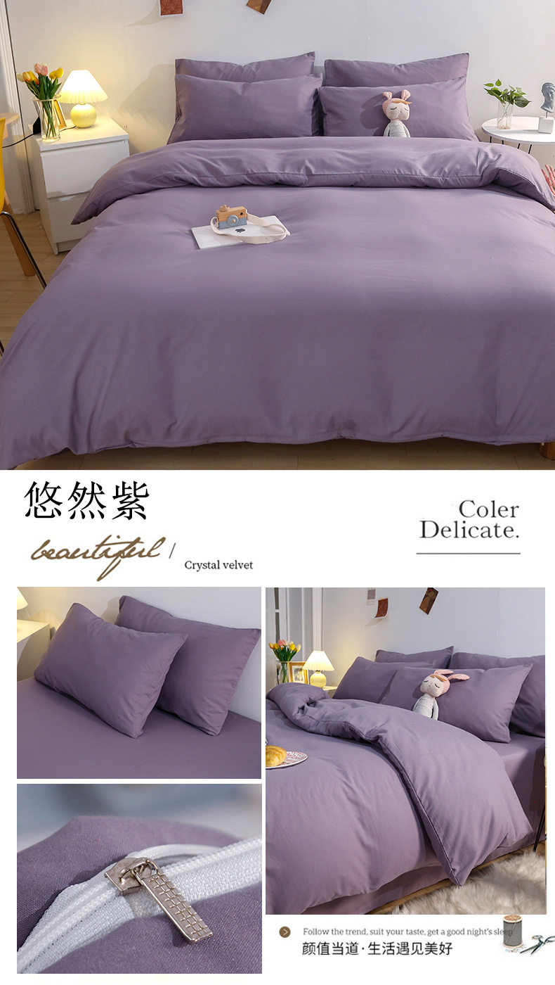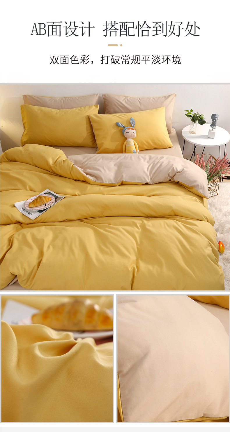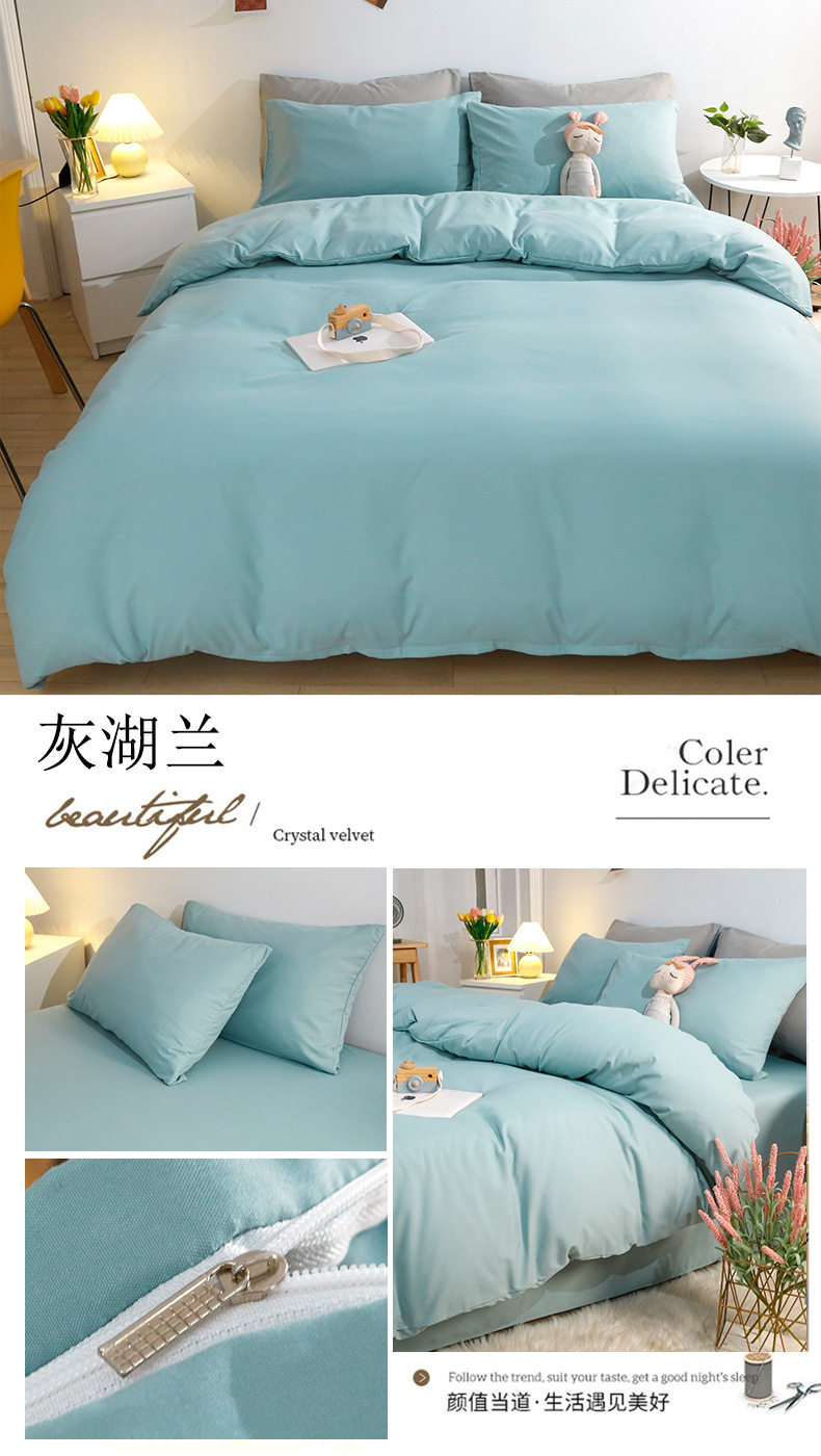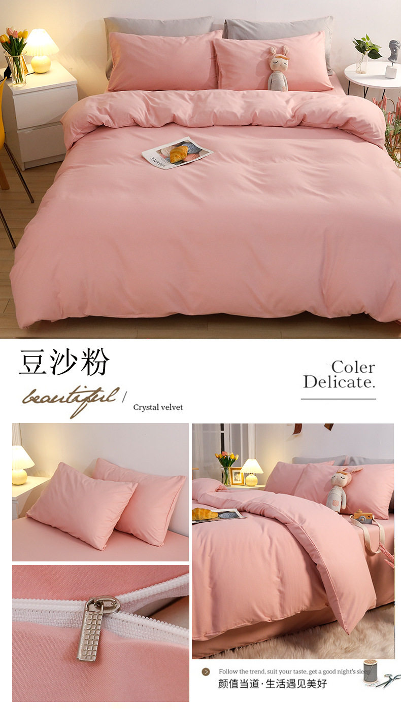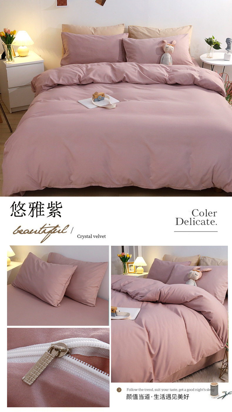 Japanese Pure Color Double Four-piece Bedding Set, Simple and Skin-friendly Brushed Student Dormitory Bed Bed Sheets and Quilt Cover Three-piece Set